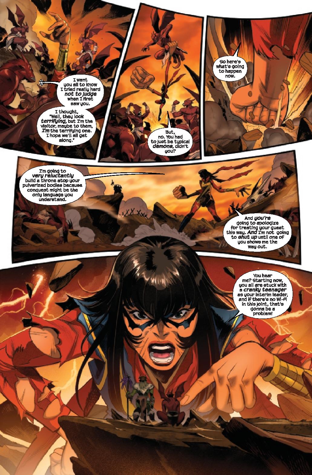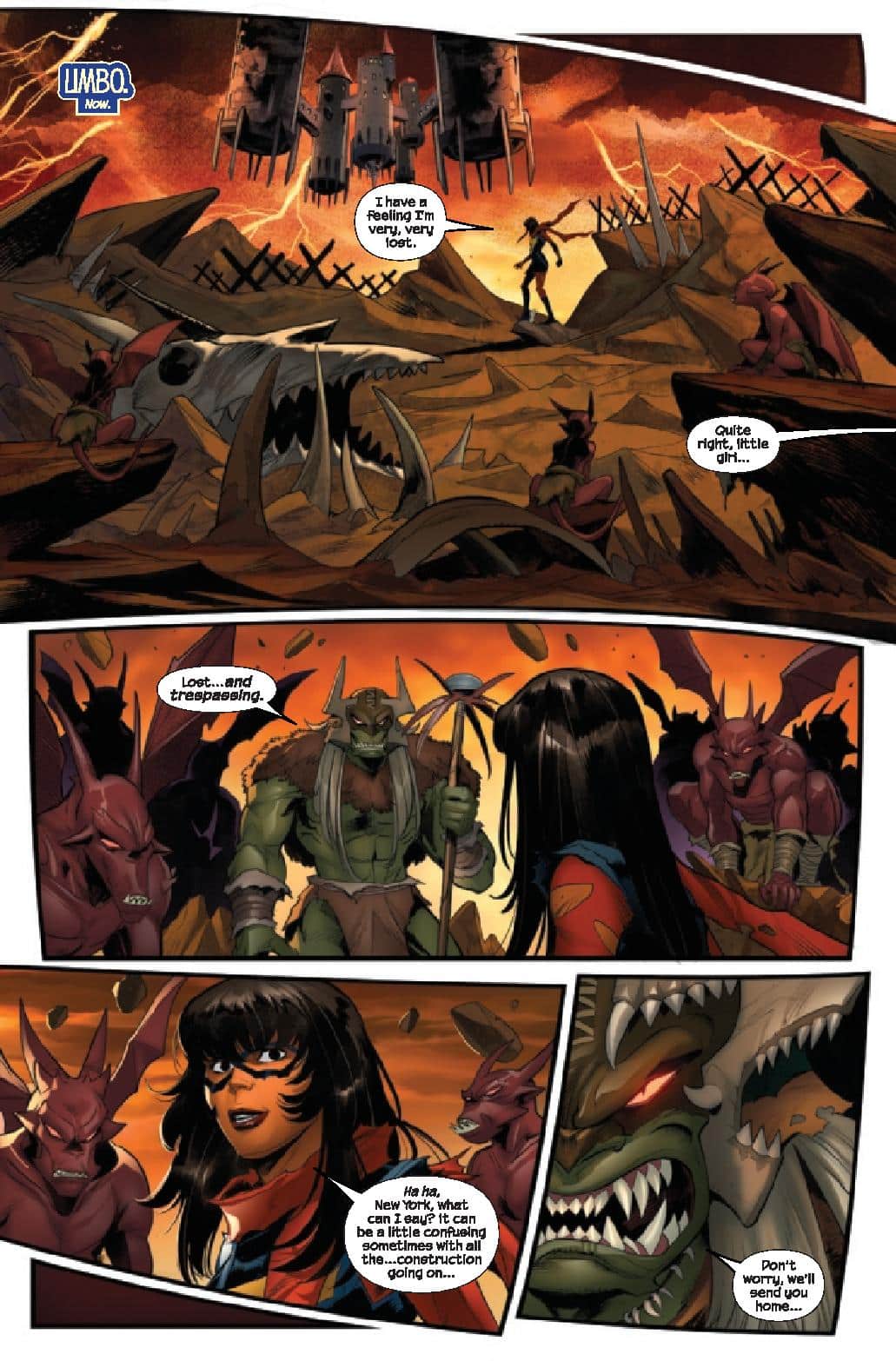 LOST IN LIMBO! Caught in the explosive events unfolding across New York – including a face-to-face confrontation with CHASM himself – Kamala Khan finds herself teleported to Limbo, the domain of the Goblin Queen Madelyne Pryor! As the city descends into chaos that threatens everything and everyone Kamala holds dear, she’s left with no choice but to call on MILES MORALES for a helping hand!