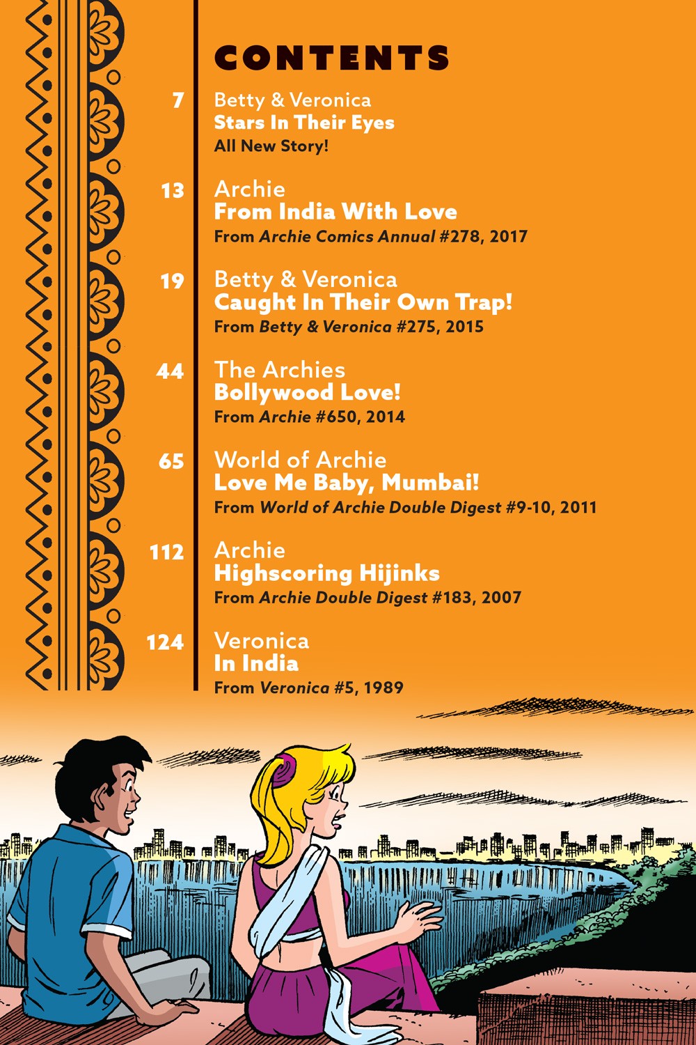 Archie and his friends from Riverdale have been globetrotting for decades… but their favorite place to visit by far is India! This special collection includes every story where Archie, Betty, Veronica, Jughead, and yes, even Reggie, have travelled to the great country. And what would any great trip be without plenty of romance, special cameo appearances, and TONS of musical moments? Plus, a BRAND-NEW STORY! In “Stars in Their Eyes,” Bollywood star Amisha Mehta has a film lined up to shoot in India and manages to get Betty and Veronica a gig as extras. The girls arrive on the set and Amisha discovers one of the biggest teen heartthrobs, Prasad Arora, is now scheduled to be in the film as well. When she hears this, she’s hopeful she will be in a scene with her crush. Betty and Veronica decide to play matchmaker to get Prasad and Amisha introduced… but will they cause more harm than good?