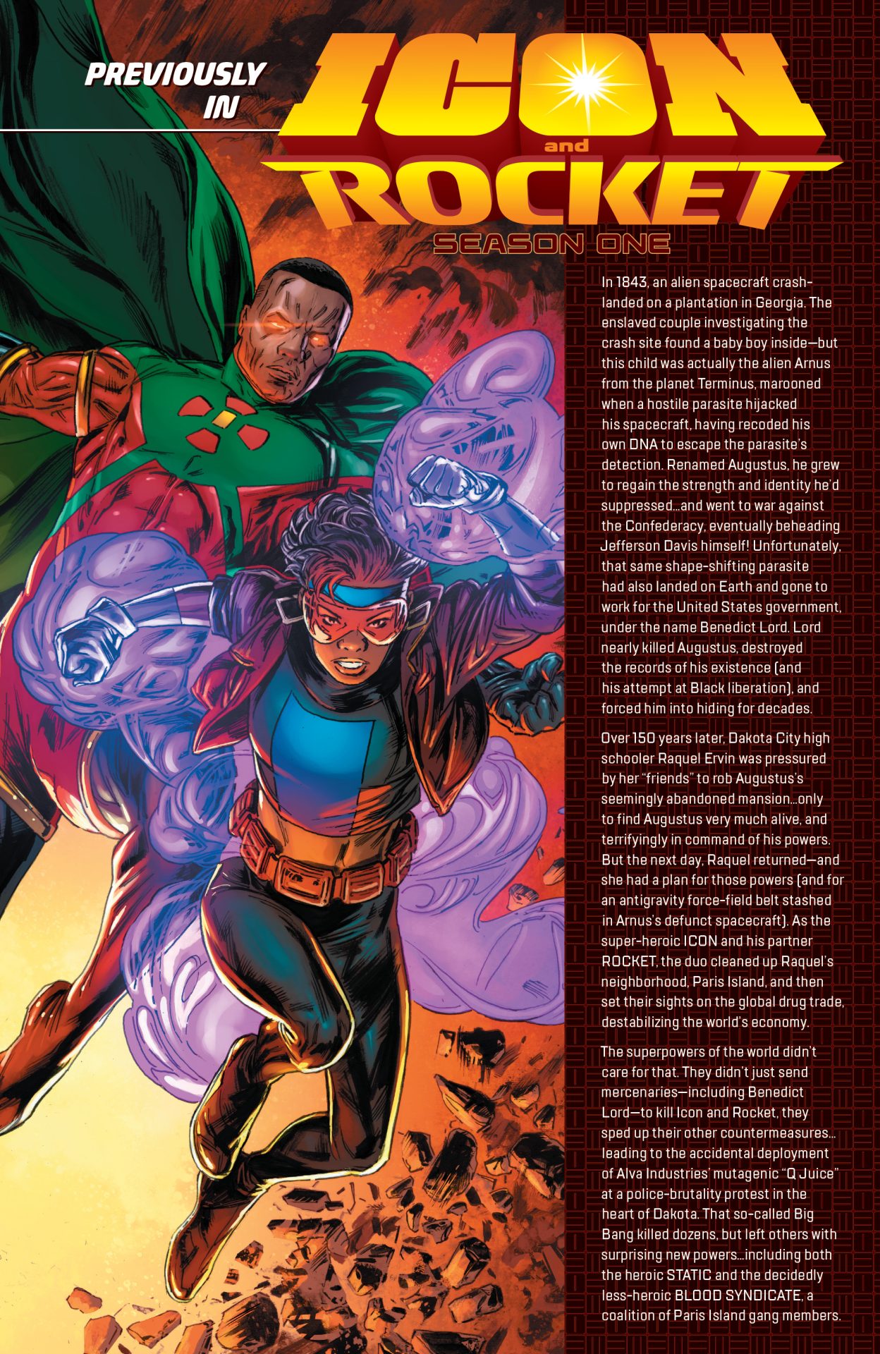Two Titans Of The Milestone Universe Clash — And In The Process, Set In Motion A Chain Of Events Leading To A Story Bigger Than You Could Ever Imagine! When Hardware Discovers A Long-Suppressed Time Machine Hidden In A Government Warehouse, His Obsession With Righting The Wrongs Of The Past — Those Of Both American History And His Own Tragic Family — Will Unravel The Fabric Of Time For The Milestone Universe. But While There Are Many Problems With Hardware’s Plan, There’s One Big One: Wherever He Goes In America’s Last Two Centuries, Icon Is There, Having Lived Through It! And A Man As Powerful As Icon Knows The Profound Danger Of The Forces Curtis Metcalf Is Unleashing…And He’ll Do Whatever It Takes To Put The Genie Back In The Bottle! Icon Vs Hardware Is The Official Kickoff Of Act One Of Milestone’s WORLDS COLLIDE Event—And If You Think You Know What That Phrase Means, You’d Better Not Get Overconfident! This Is The Ideal Jumping-On Point For Those Who’ve Sat Out The Story Of Dakota So Far, Because This Ride Is Headed Somewhere Unexpected!
