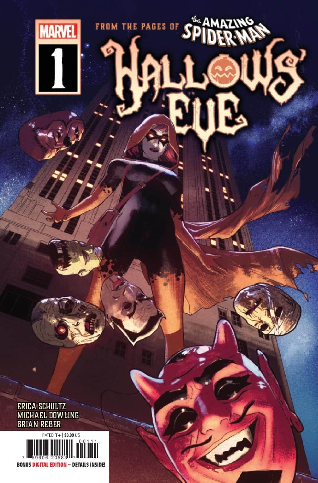 Hallows’ Eve #1 is an interesting comic in that it does a lot. While it’s a first issue, Janine’s story feels like a continuation of the recent “Beyond” storyline in Spider-Man and especially “Dark Web”. Though you don’t have to have read either, there’s absolutely moments where I wasn’t quite sure of motivations. But, writer Erica Schultz keeps the story focused and simple. Janine is trying to get money so she can disappear with her love Ben Reilly who currently is in jail in limbo. This isn’t some complicated motivation, it’s one we’ve seen many times before. Get a certain amount of money to set up a life and then get out.