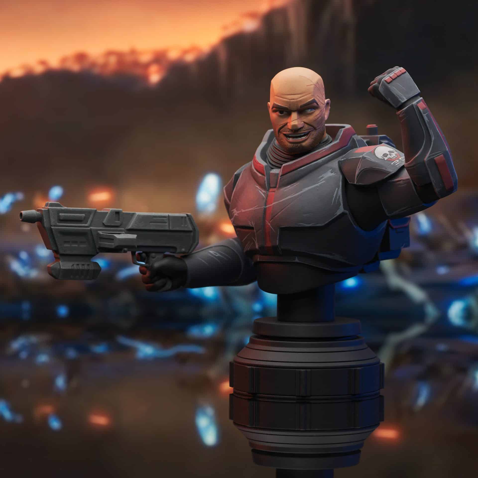 From Diamond Select Toys. A Gentle Giant Ltd. release! The bruiser of the Bad Batch is here! Wrecker, the biggest, strongest and loudest member of Clone Force 99, is now the latest animated-style 1/7 scale mini-bust from Gentle Giant Ltd. Measuring approximately 7 inches tall, this exclusive resin mini-bust shows Wrecker without his helmet, is limited to only 3,000 pieces and comes packaged in a full-color window box with a numbered certificate of authenticity. Designed by Barry Bradfield, sculpted by Paul Harding! (Item #MAR219096, SRP: $99.99)