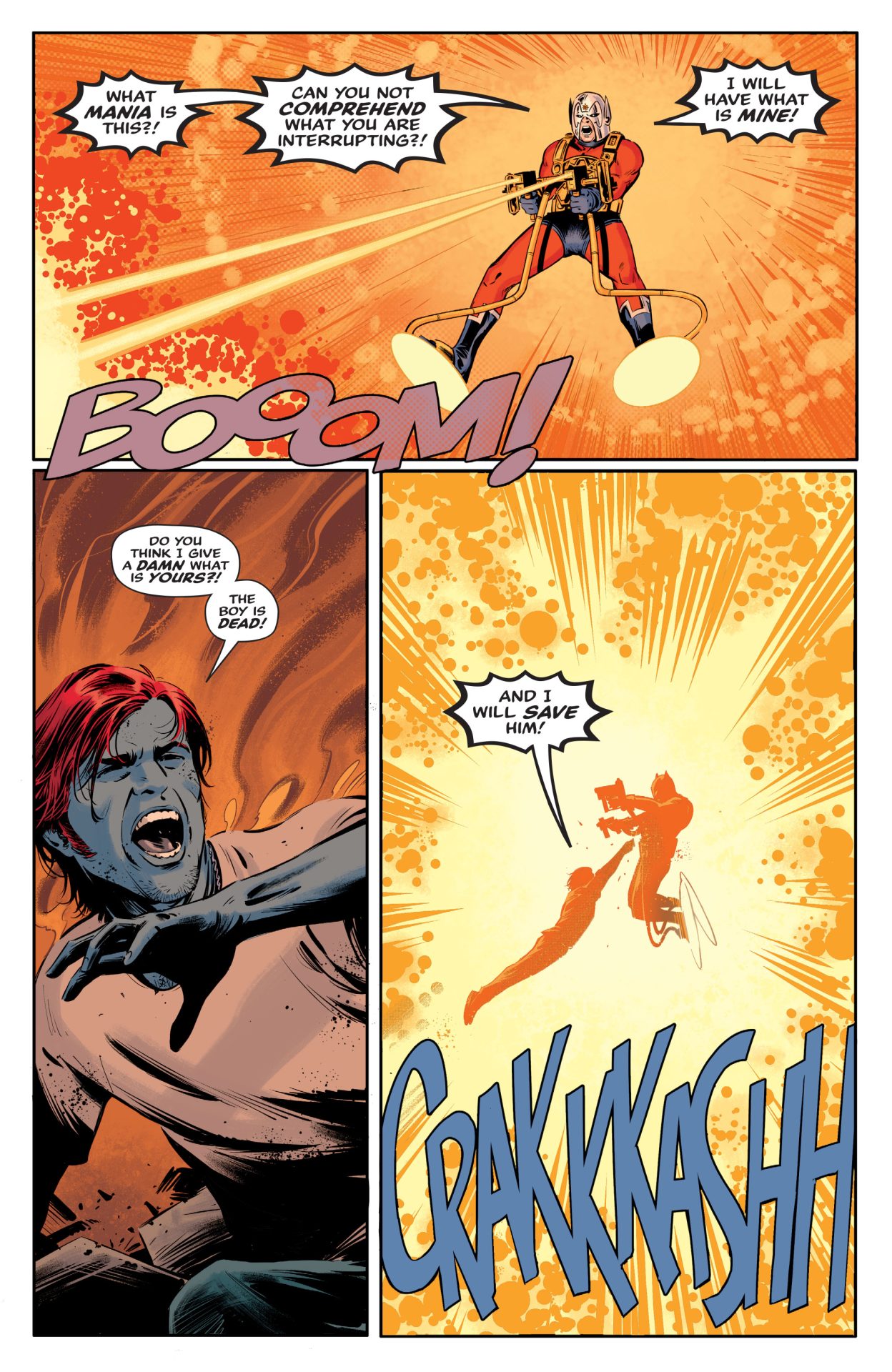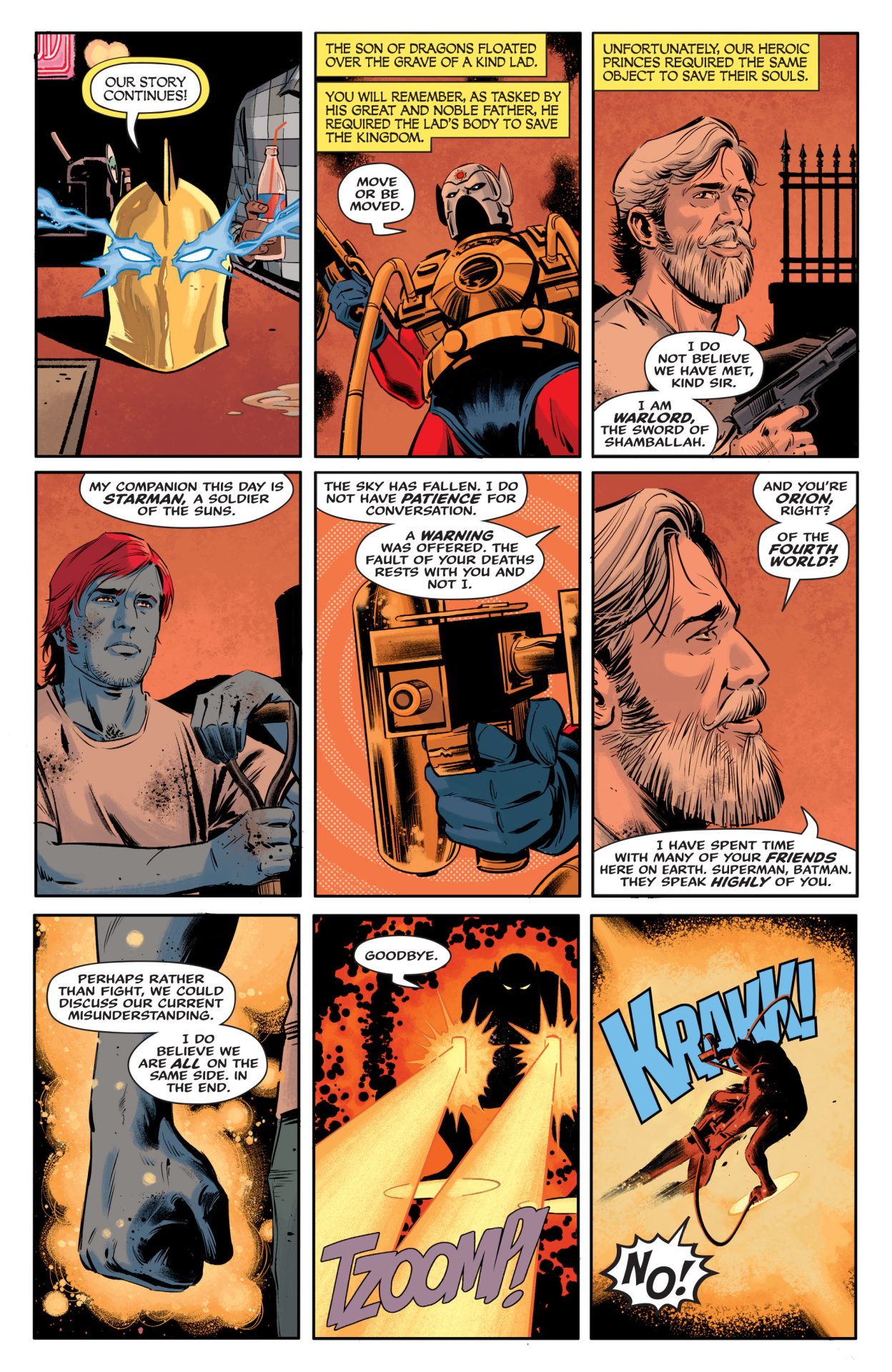 What does a small-town murder have to do with the mysteries of the Multiverse? Lady Cop is on the case, but time is running out! Gods from beyond the stars are battling over the boy who could save all their lives, the Manhunter is stalking his prey, and, meanwhile, the Dingbats are tired of waiting for answers…and they’re about to take revenge into their own hands!
