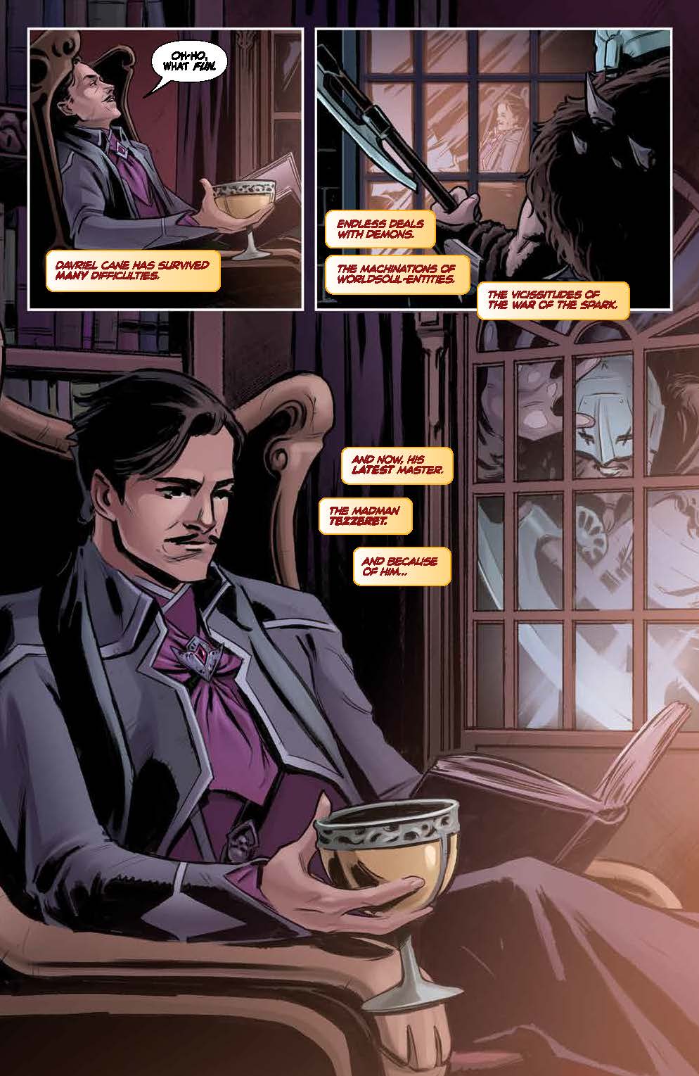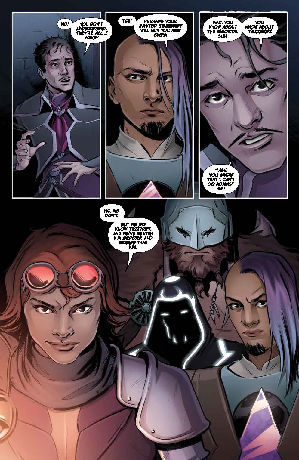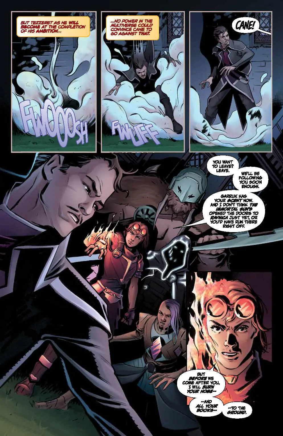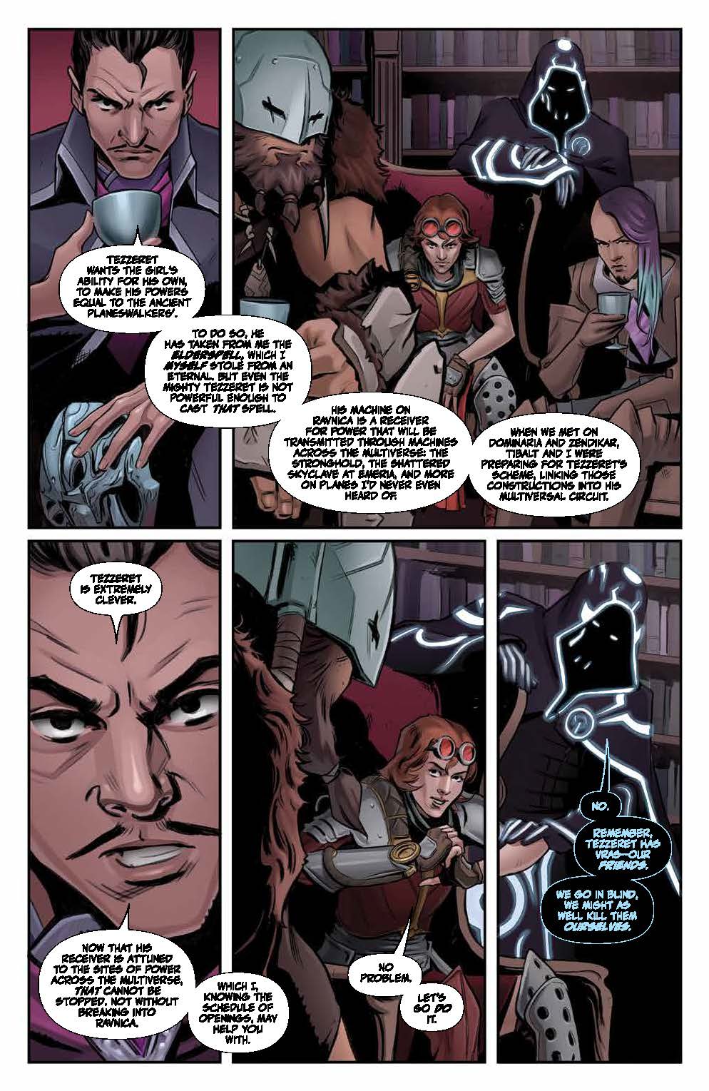 If Chandra, Niko, and Garruk want to succeed in freeing the former Guildmasters from Tezzeret’s sadistic prisons…they’ll have to face a challenge that no one could have predicted! And far away… another infamous Planeswalker seeks the powers of fate to make their own…