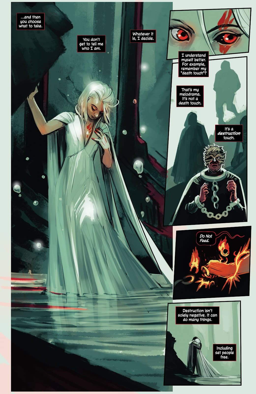 I have been aware of tabletop role-playing games (TTRPGs) for most of my life but became fully immersed in them when I joined my first Dungeons and Dragons group while in college. Although I have not strayed outside of that specific game, TTRPGs have not only provided a space where I have made several friendships but a place where I can experiment and explore concepts that I cannot typically do in my everyday life. Because of this, Kieron Gillen‘s and Stephanie Hans‘ Die felt like a series perfectly crafted for me. Outside of being a Gillen superfan, I connect strongly to his work due to the presence of well-rounded queer characters and deeply personal narratives. I often connect deeply with his titles; Die hits me on a much more primal and subatomic level. More notably, though, in Die, the character of Ash struck a vital emotional nerve not only with their arc but how their experiences with TTRPGs and exploration of gender and queerness mirrored my journey while playing Dungeons and Dragons.