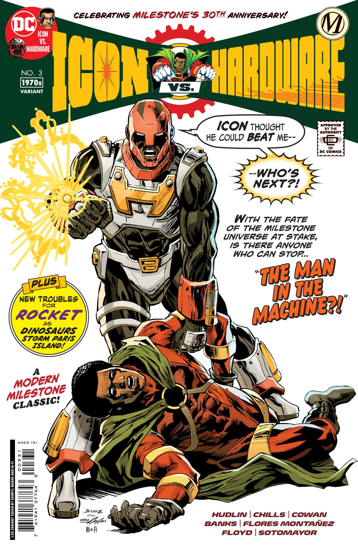 Hardware’s rampant tampering with the timeline is weakening the boundaries of reality and unraveling not just his own history, but the history of the entire Milestone Universe…and as the cracks in the walls of creation start to show, a terrifying threat emerges from a most unexpected place! The ending of this issue will shock you!