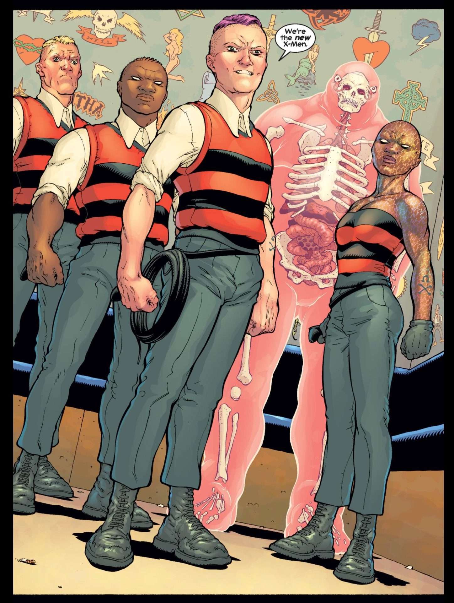 Created by Grant Morrison and Keron Grant, Quentin Quire first appears in New X-Men #134, which then leads into the “Riot at Xavier’s” arc that spans from New X-Men #135 to #137 with an epilogue in issue #138. Quentin, the primary character and antagonist of the arc, is a vehicle for Morrison and co to tell a story about the surface-level politics alienated teenagers sometimes adopt. The kind of person who doesn’t care to meaningfully understand a political ideology but instead dresses in the aesthetics and symbolism of an ideology as a means to performatively rebel against their elders and the world around them.