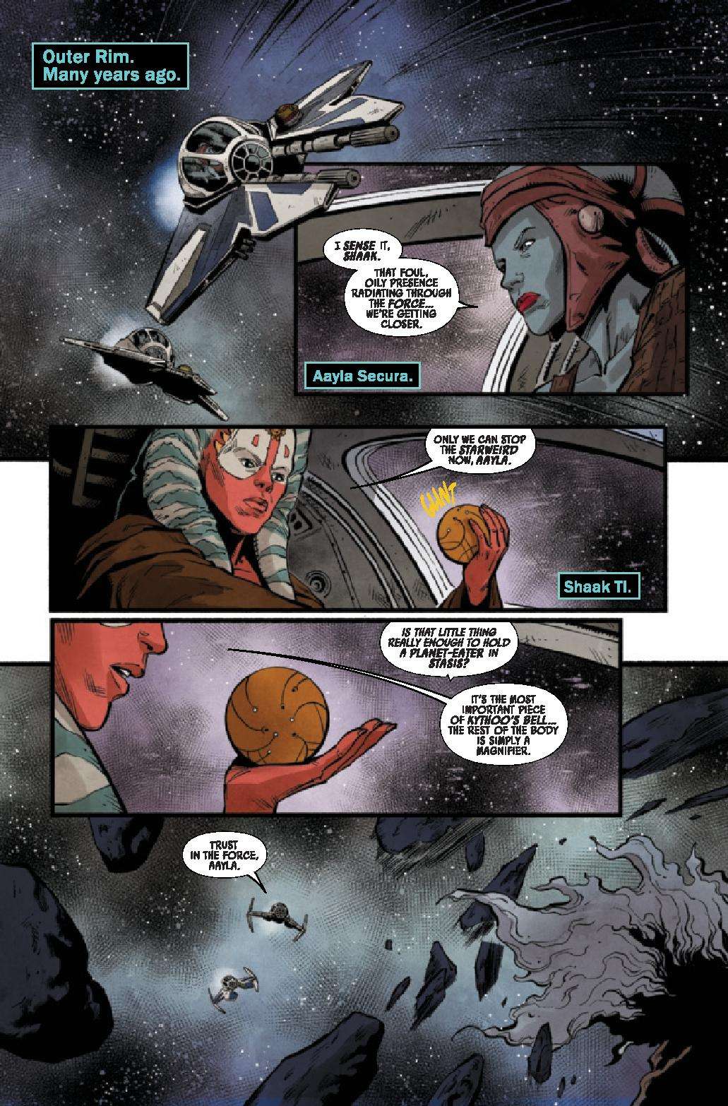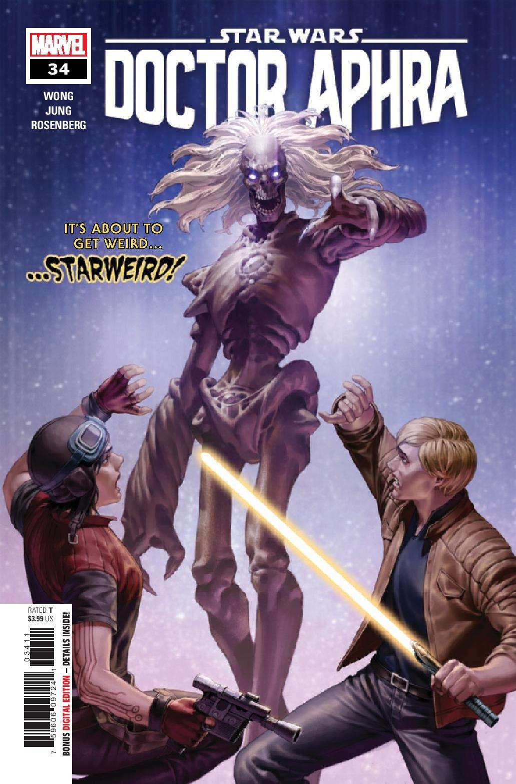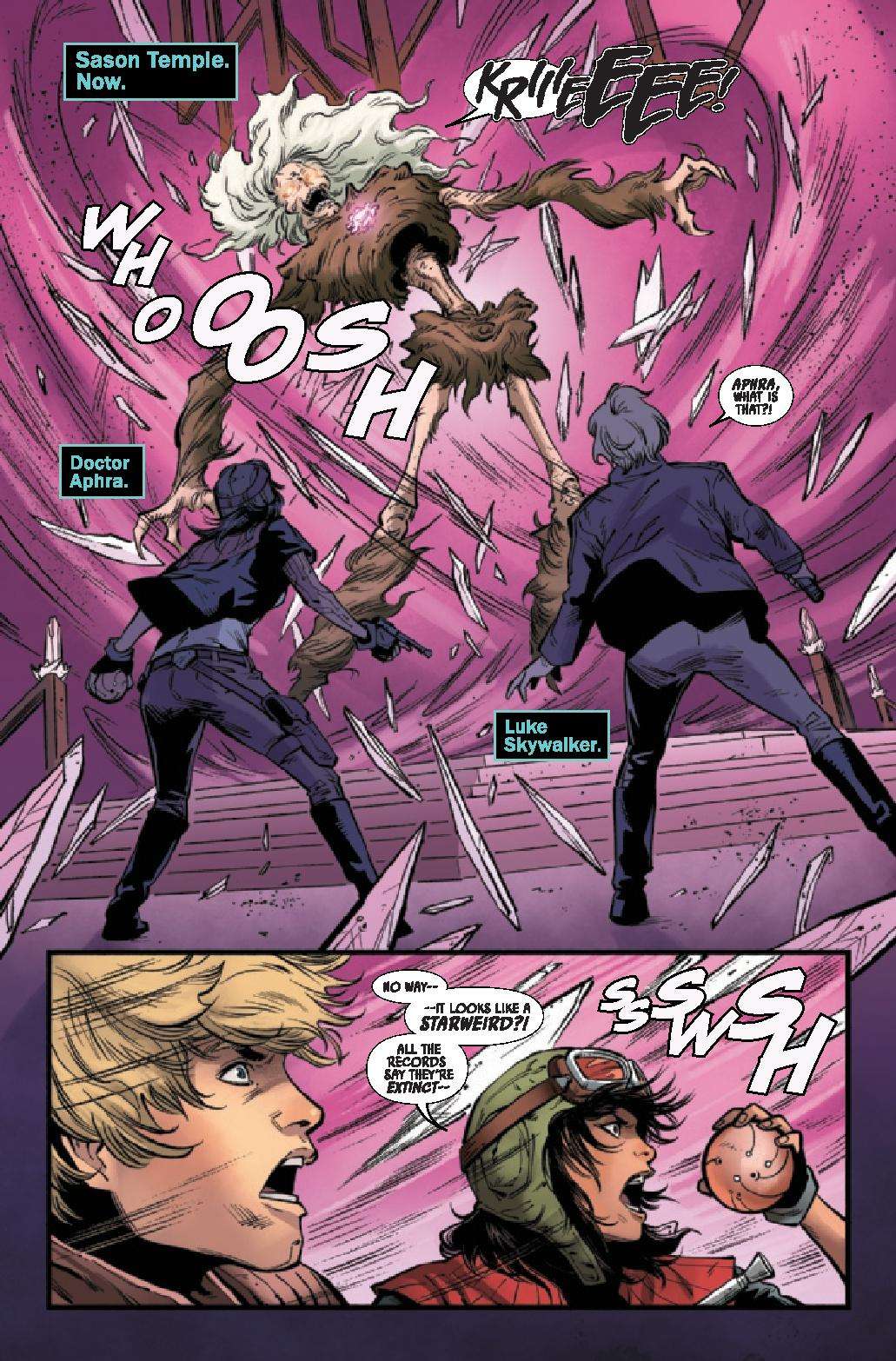 ENTER THE STARWEIRD! Long ago, Jedi Masters SHAAK TI and AAYLA SECURA sealed away a GREAT AND TERRIBLE POWER… …a horrifying, ancient creature that RESONATES WITH THE FORCE… …and DOCTOR APHRA and LUKE SKYWALKER have just released it!