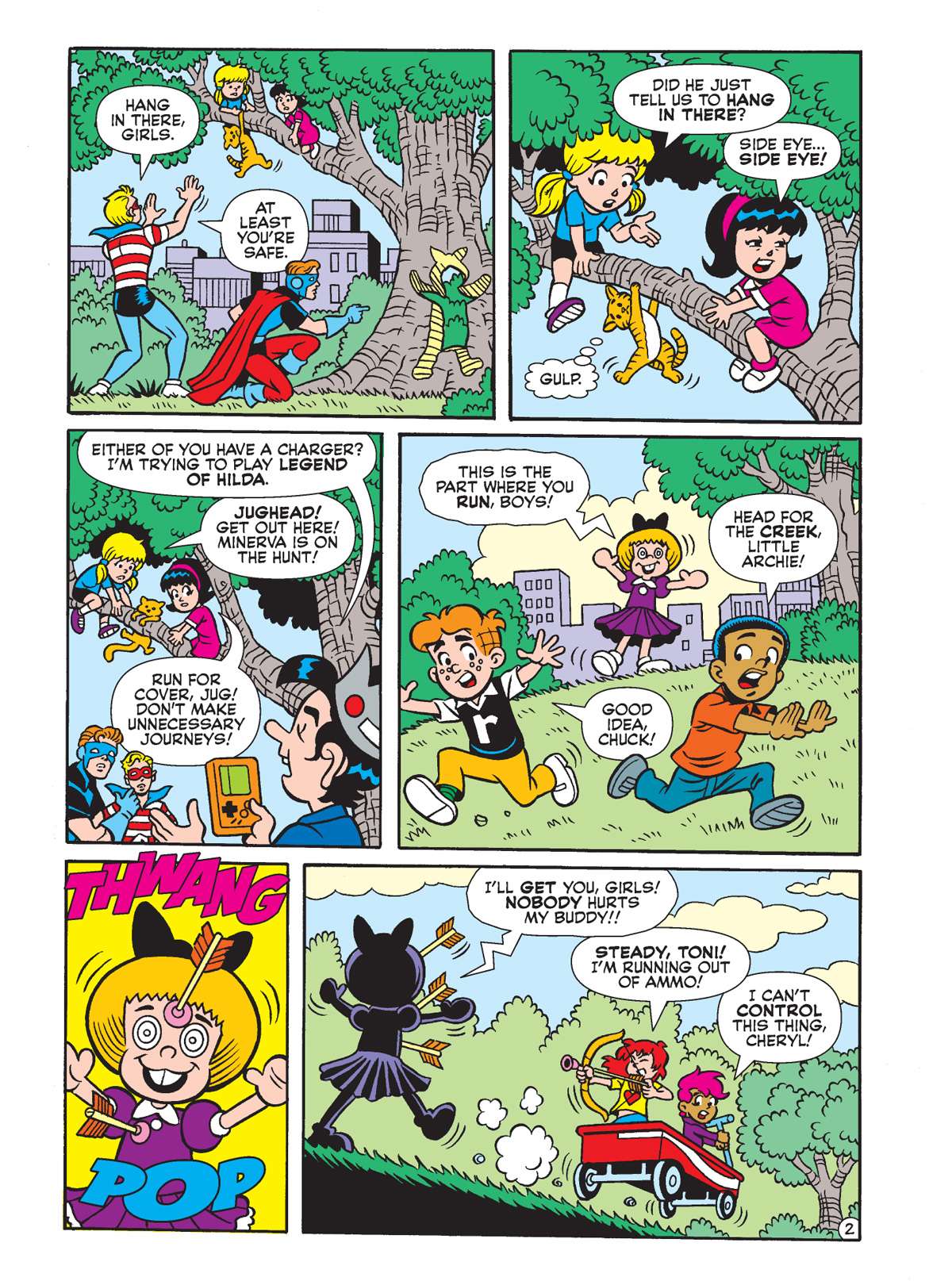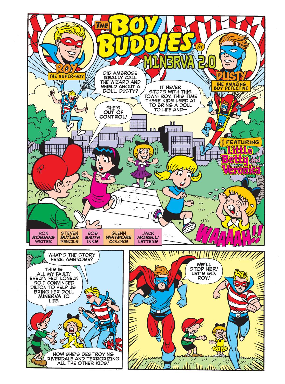 TWO BRAND NEW STORIES! First, in “M1N3RVA 2.0,” Little Dilton uses AI technology to help Evelyn Evernever bring her beloved Minerva doll to life. But when Minerva has a mind of her own, she wreaks havoc on Riverdale! The BOY BUDDIES are on the case to stop the doll’s reign of terror in this riff on the popular movie M3GAN.