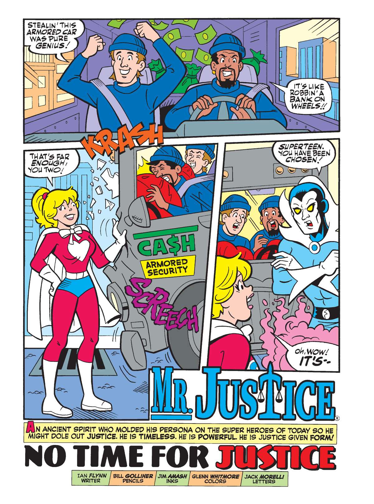 Then, in “No Time for Justice,” SUPERTEEN, Betty’s superhero alias, stops two robbers in their tracks—which catches the eye of fellow superhero MR. JUSTICE! But how will Betty like having a brand-new superhero identity?