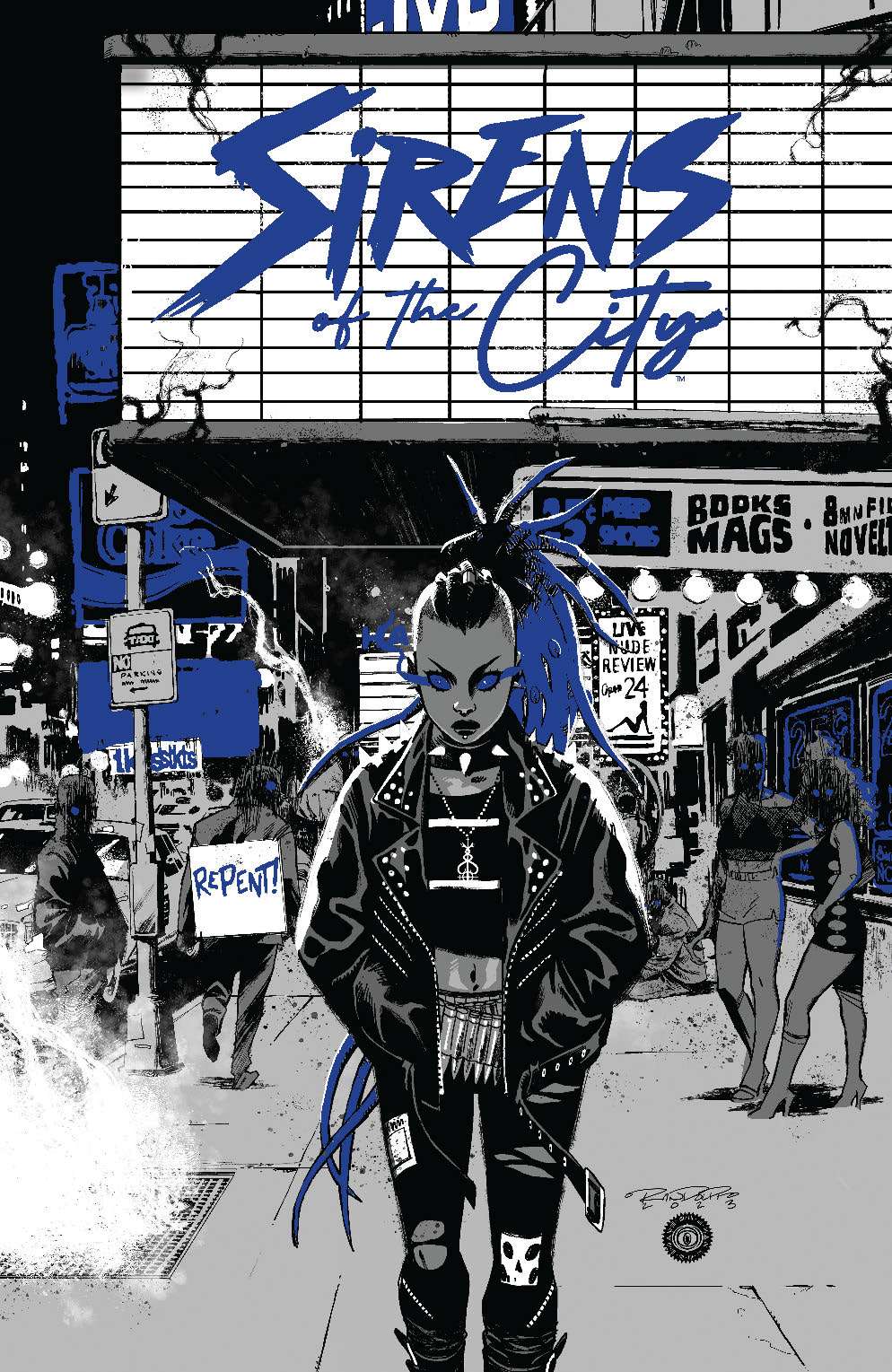 Sirens of the City #1 is an urban fantasy/monster story set in late 1980s Manhattan by writer Joanne Starer and with wonderful black, white, and spot colors from artist Khary Randolph. It follows a 16 year old pregnant, unhoused girl named Layla, who has been abandoned by her foster family, but can make people do what she wants as illustrated in a jaw-dropping opening scene where she literally makes an anti-abortion protester walk into traffic. It’s a middle finger to the Moral “Majority” that had so much political power at this time getting many white Christian voters to switch their votes from Jimmy Carter to Ronald Reagan and also is a sad reminder that maybe things really haven’t gotten better. As the story progresses, Layla runs into old lovers and meets new folks while Starer and Randolph peel back the curtain on Manhattan and dig into its supernatural underpinning with different factions vying for territory and power with our heroine caught between them.