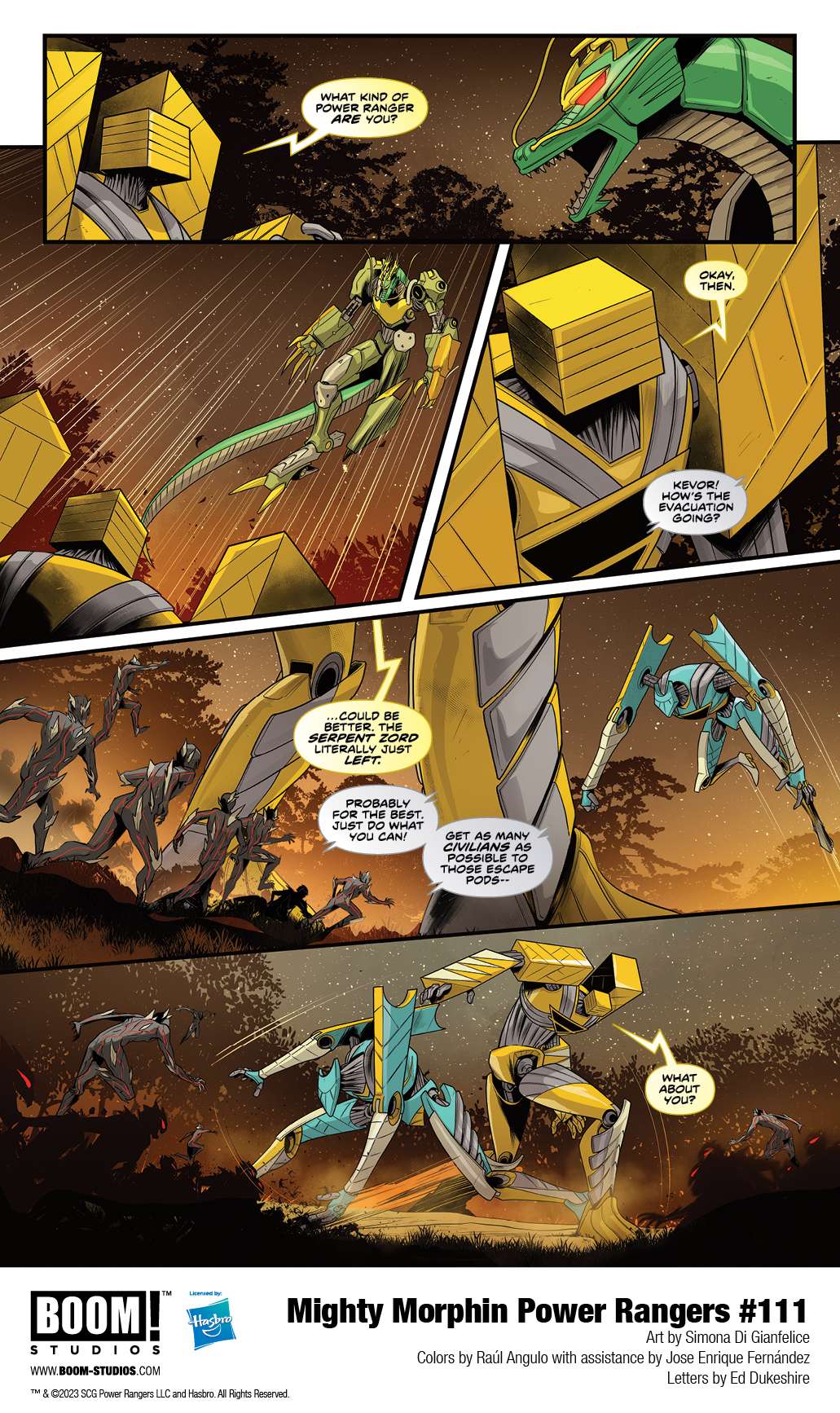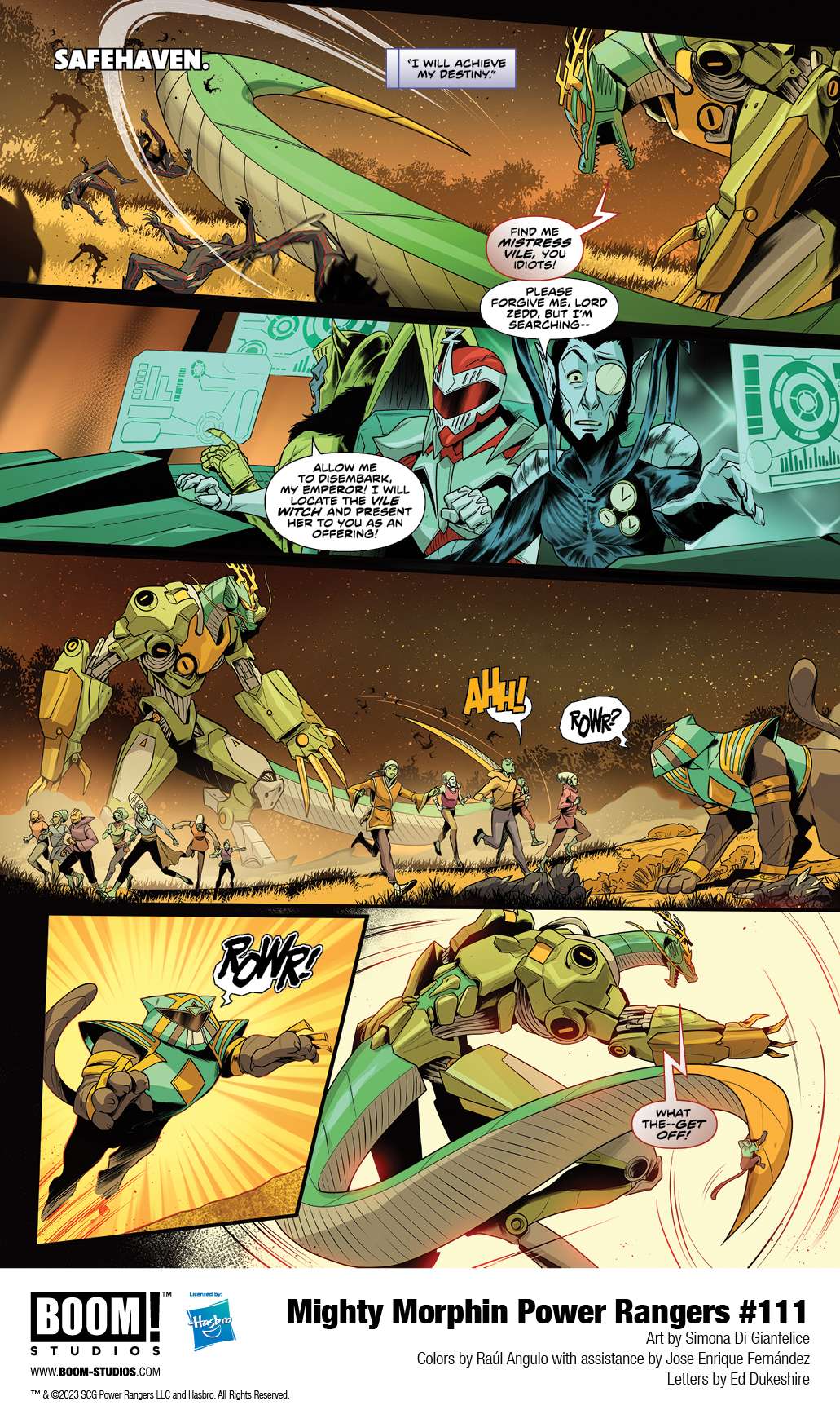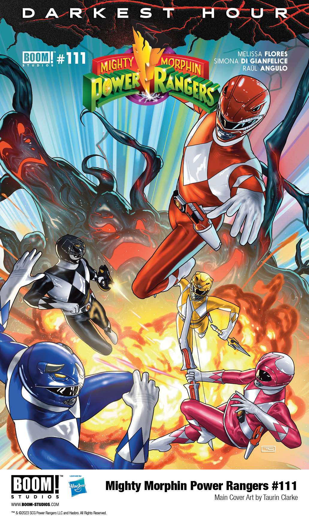 BOOM! Studios has revealed a first look at Mighty Morphin Power Rangers #111, the beginning of the Darkest Hour event, taking place after the bold and greatly anticipated Reunited, Recharged era of Mighty Morphin Power Rangers with a superstar creative lineup of writer Melissa Flores, artist Simona Di Gianfelice, colorist Raúl Angulo, and letterer Ed Dukeshire in the kickoff of this monumental 12-month event, available on August 23, 2023.
