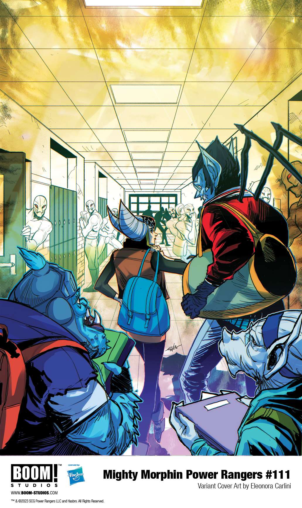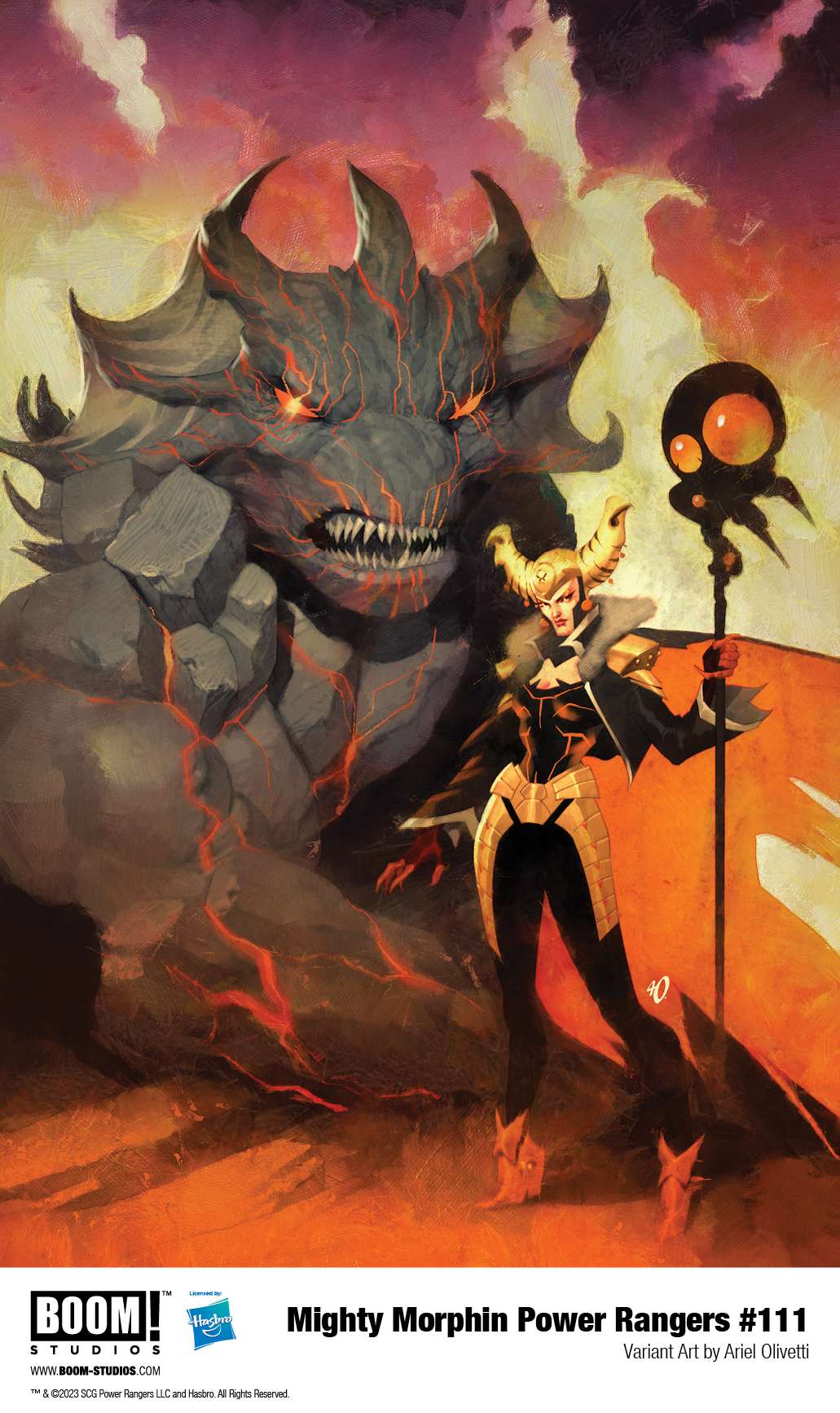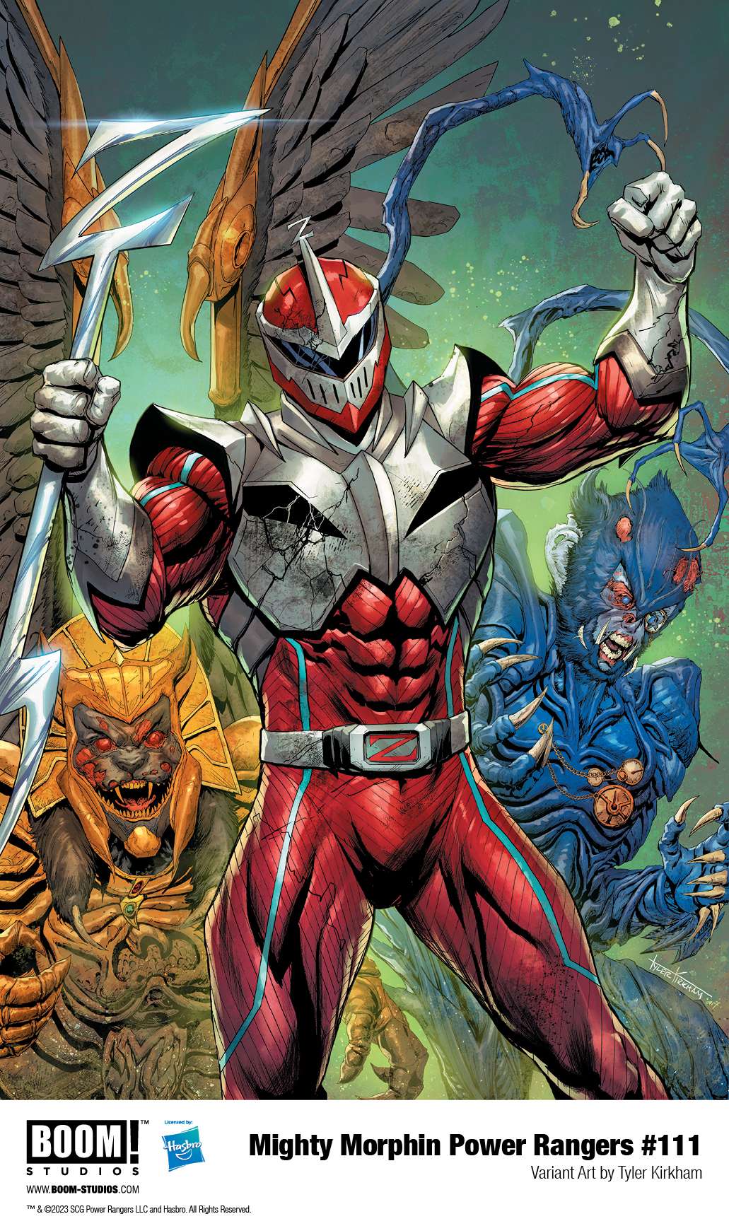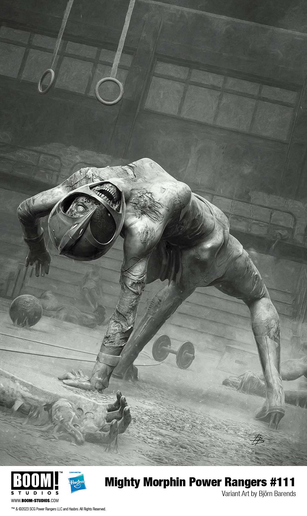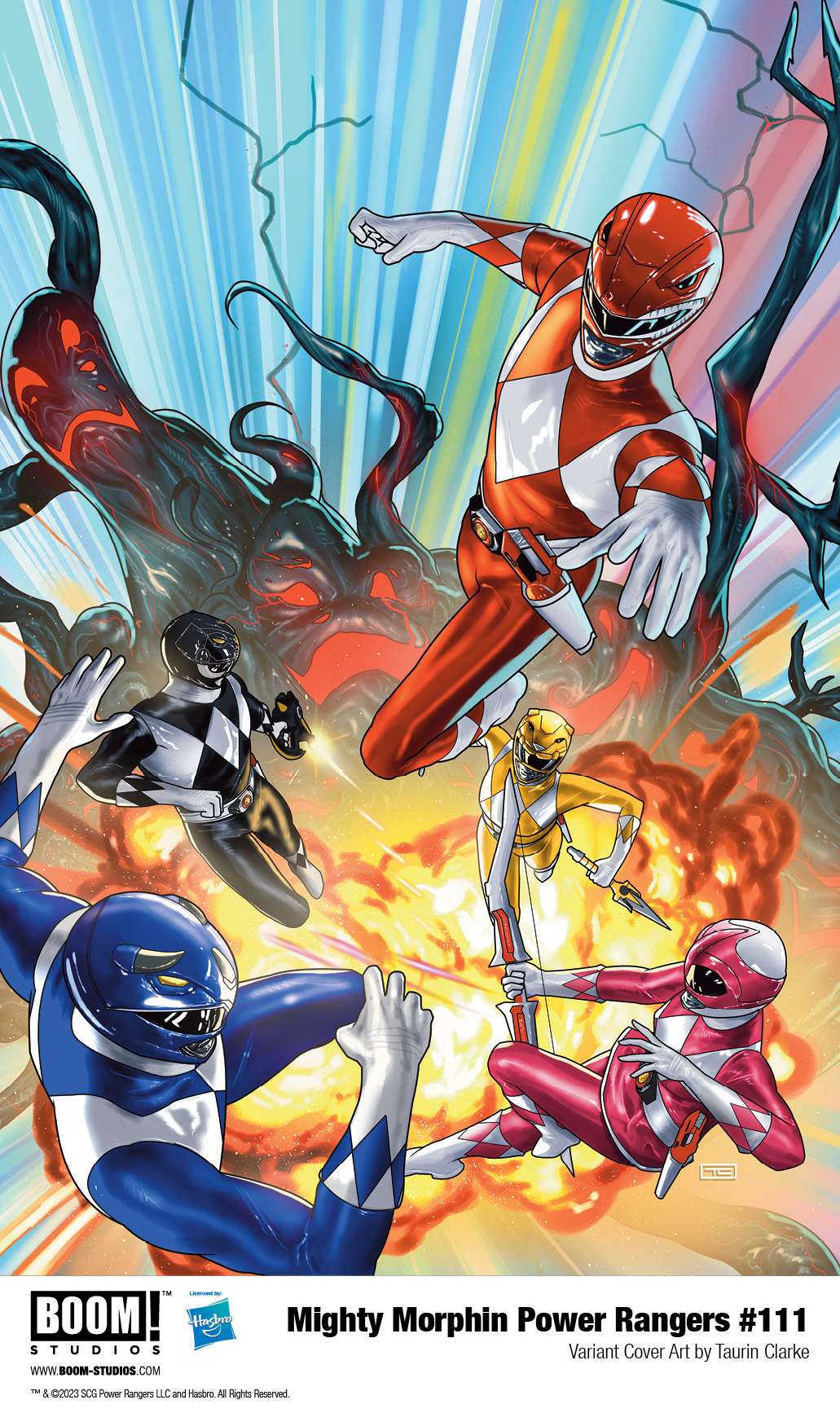 Mighty Morphin Power Rangers #111 features main cover art by star artist Taurin Clarke and variant covers by acclaimed illustrators Björn Barends, Goñi Montes, Keyla Valerio, Ariel Olivetti, and Tyler Kirkham.