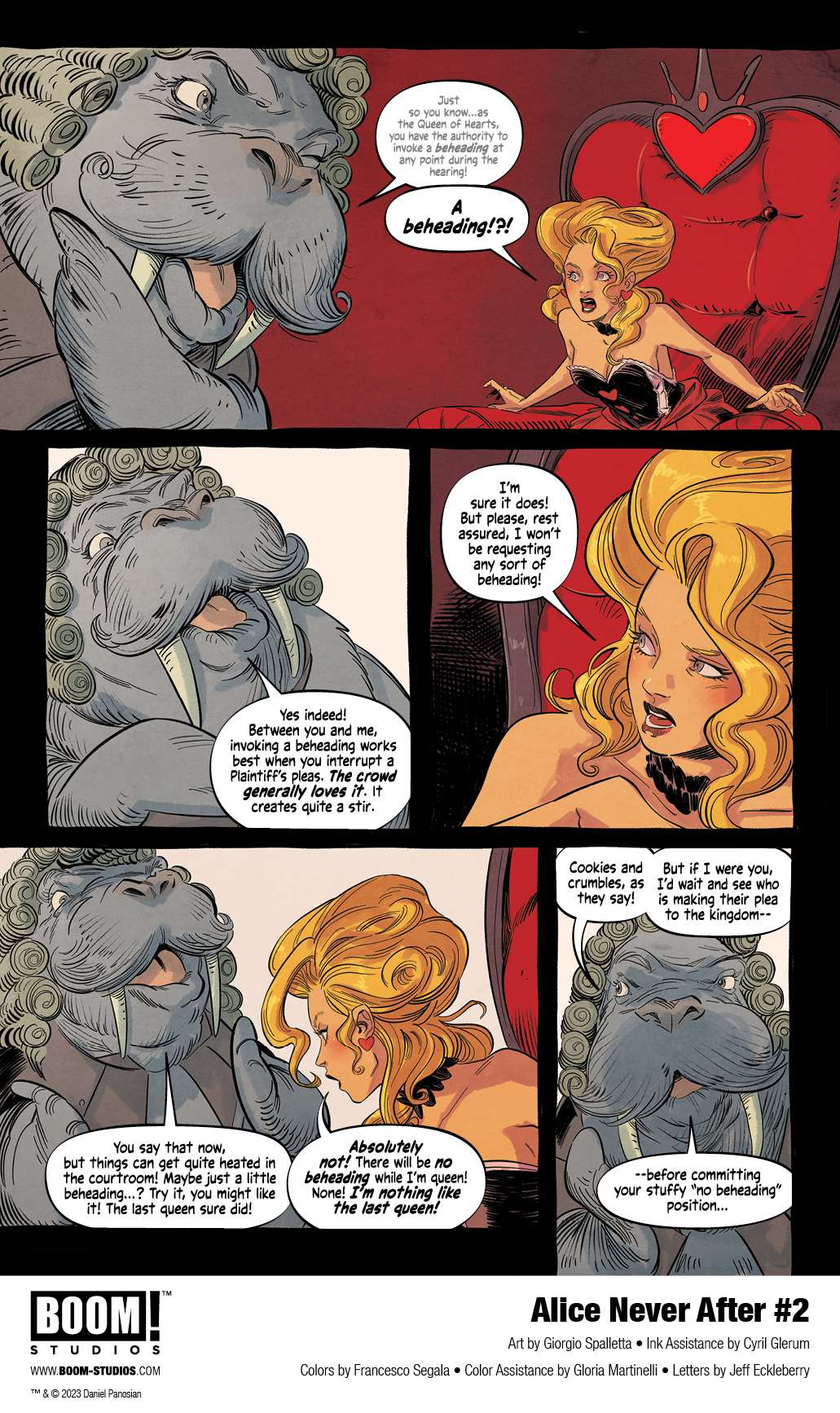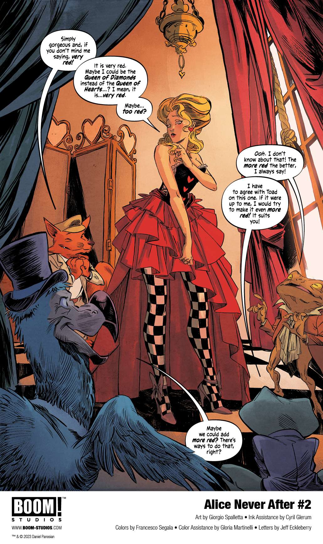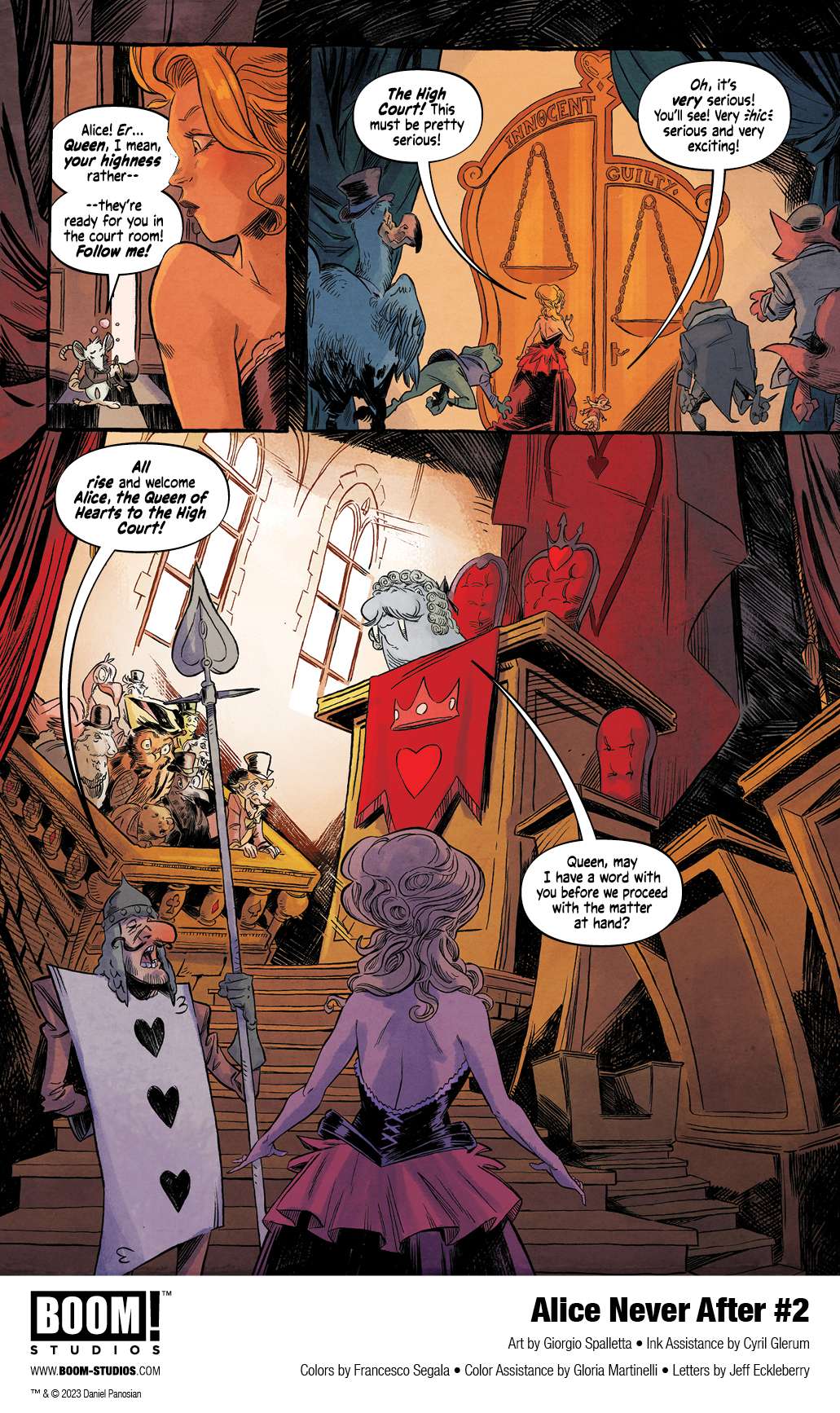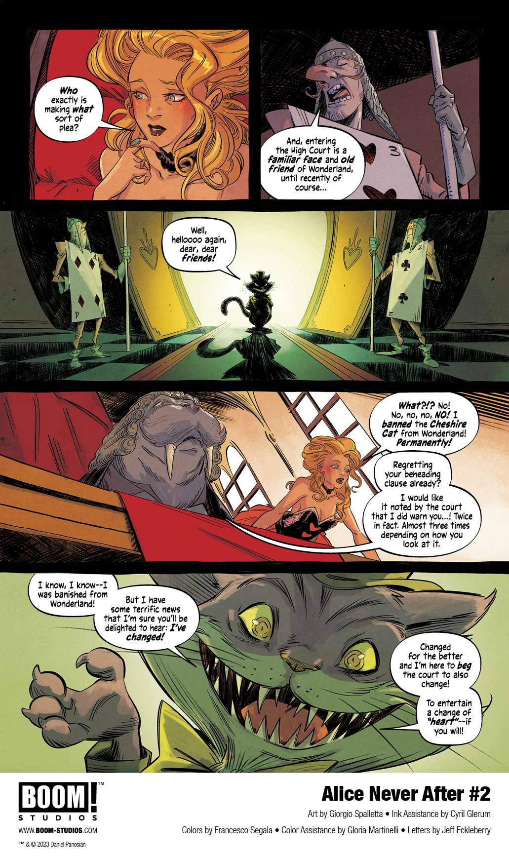 BOOM! Studios has revealed a first look at Alice Never After #2, the second issue of the new five-issue original series from superstar artist and writer Dan Panosian, artist Giorgio Spalletta, colorist Francesco Segala, and letterer Jeff Eckleberry. Continue to blur the lines between fantasy and reality this Summer in Alice Never After, only at BOOM! Studios, available August 30, 2023.