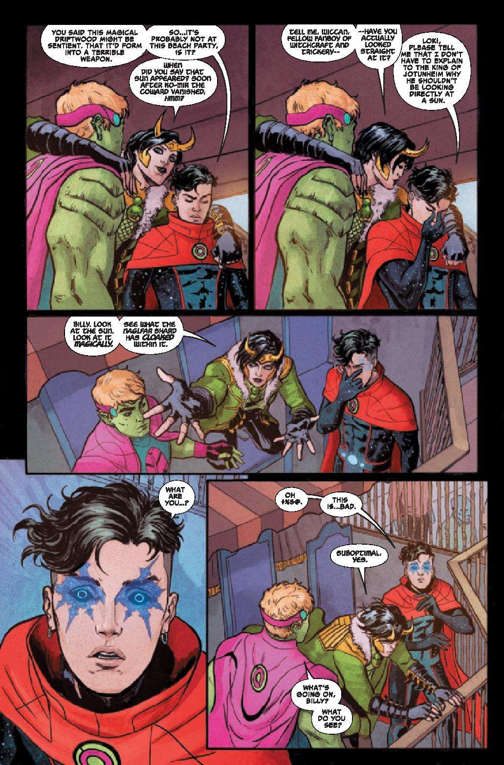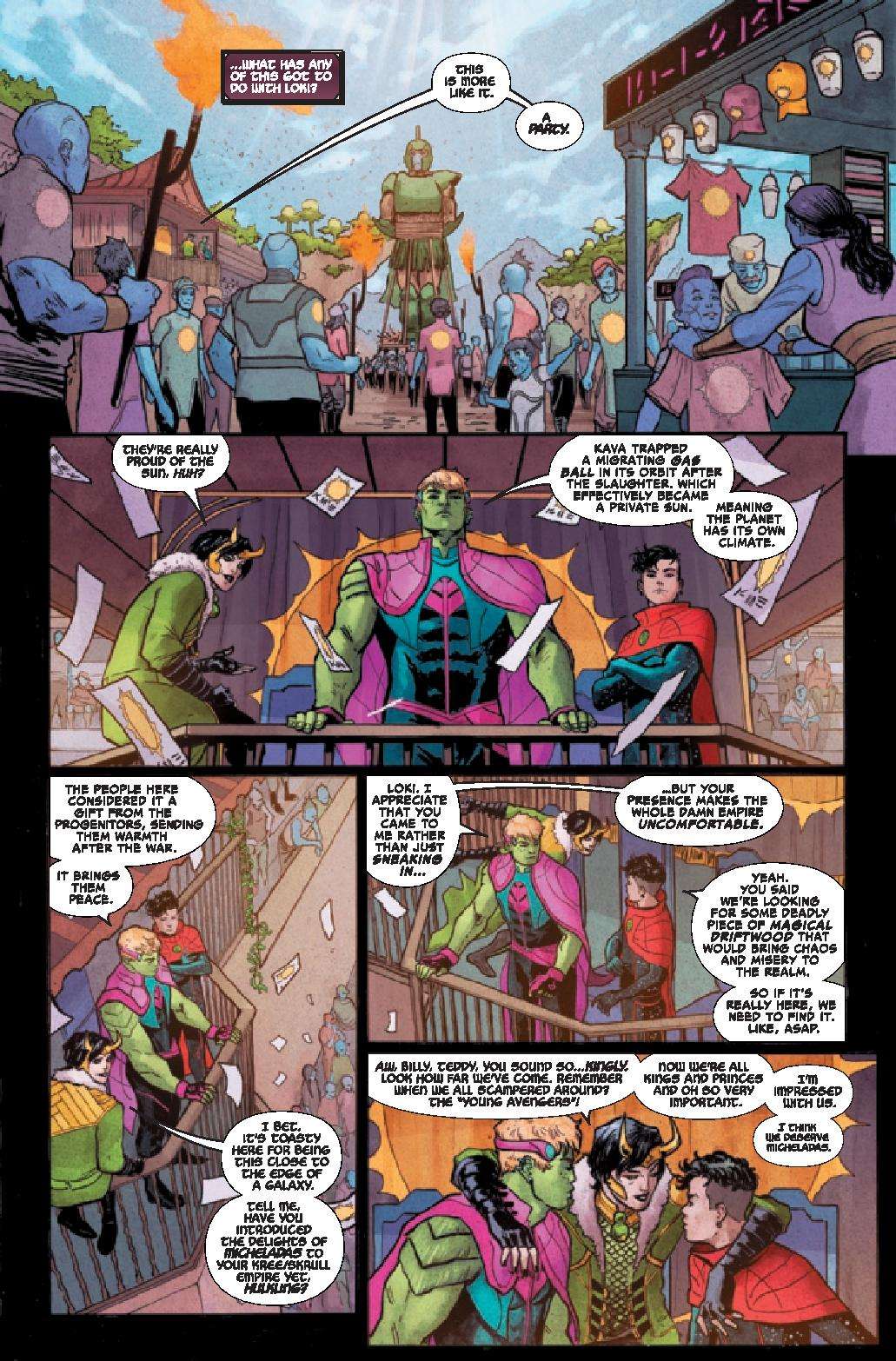 Naglfar sets sail to – the Kree-Skrull Empire! Where Emperor HULKLING and WICCAN must assist Loki in retrieving a second shard of Naglfar, which has become a holy relic on a distant planet. And they must also try to quash some old beef between the former Young Avengers teammates (the keyword being “try”).