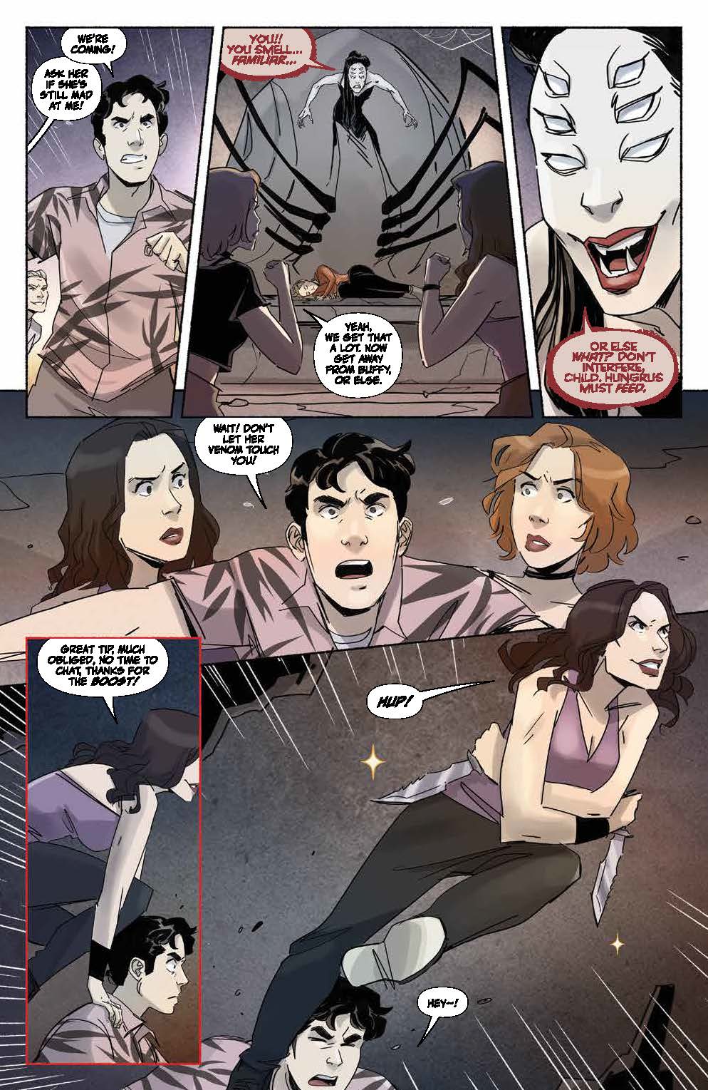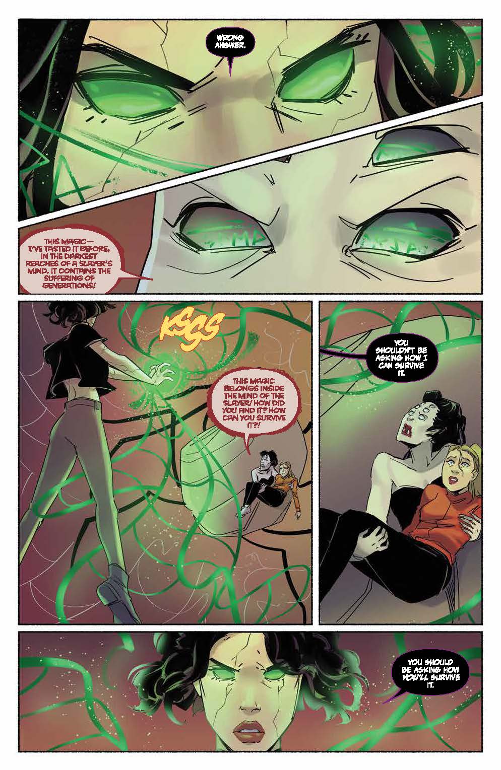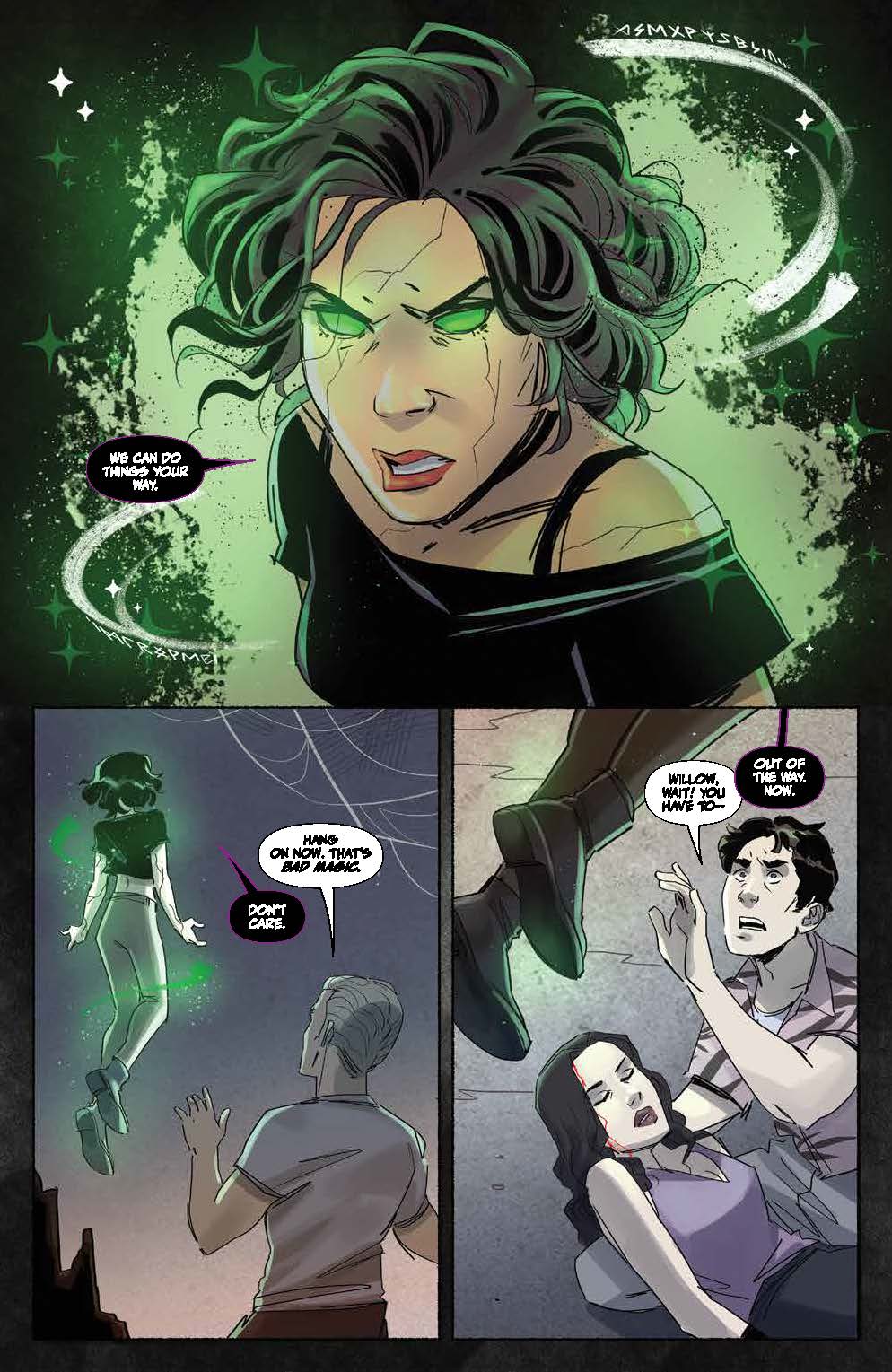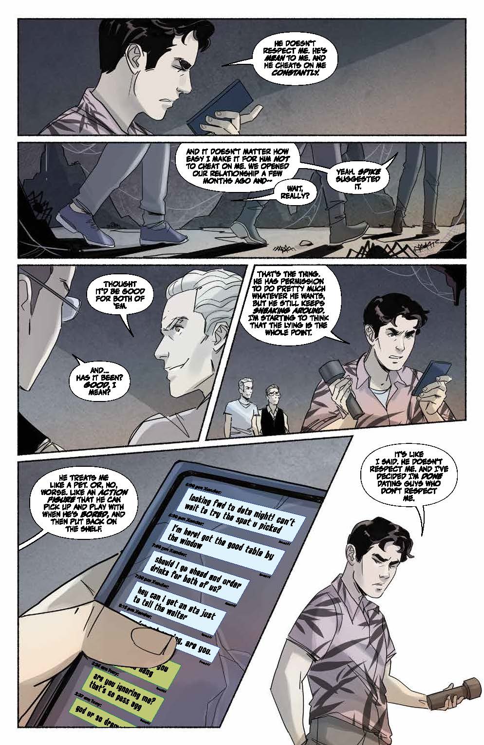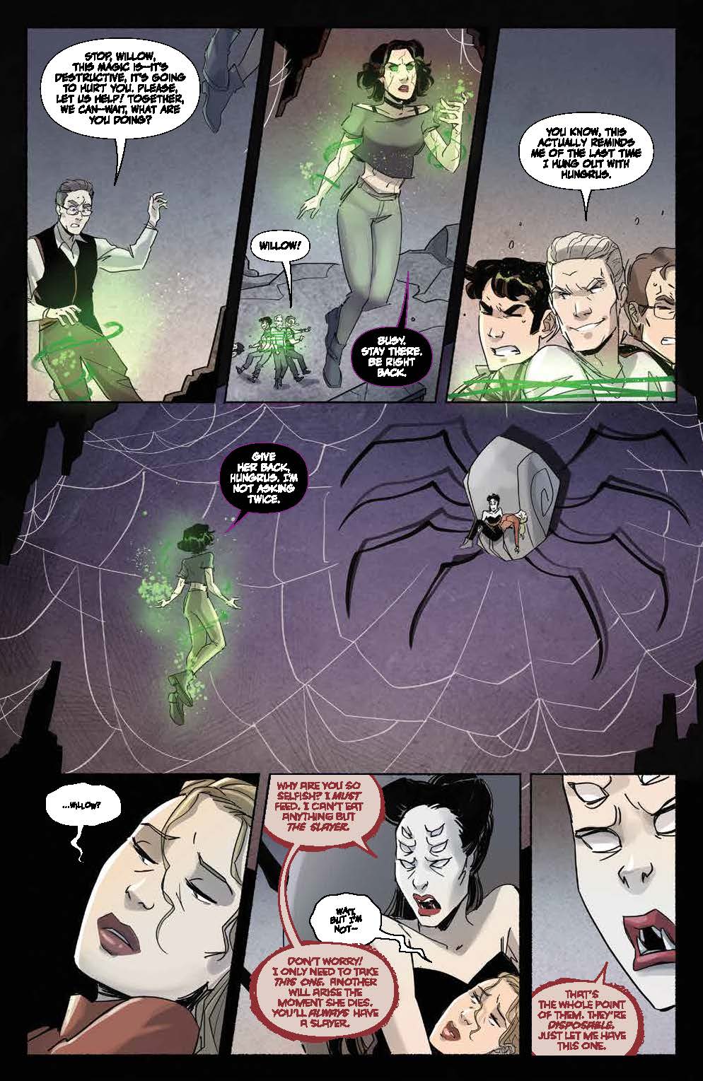 While Xander gets ready for a monstrous confrontation, he finds a new one in his relationship as well… a fight that could mean the end in more ways than one. But Willow and Faith are one step ahead of Xander. Needing supernatural aid, will Willow push herself to a place she may not be able to return from? Despite Giles’ efforts, they may have to live with an irreversible spell. And as Buffy recuperates from the previous battle that’s left her worse for wear, she’ll team up with someone just as reluctant to do so.