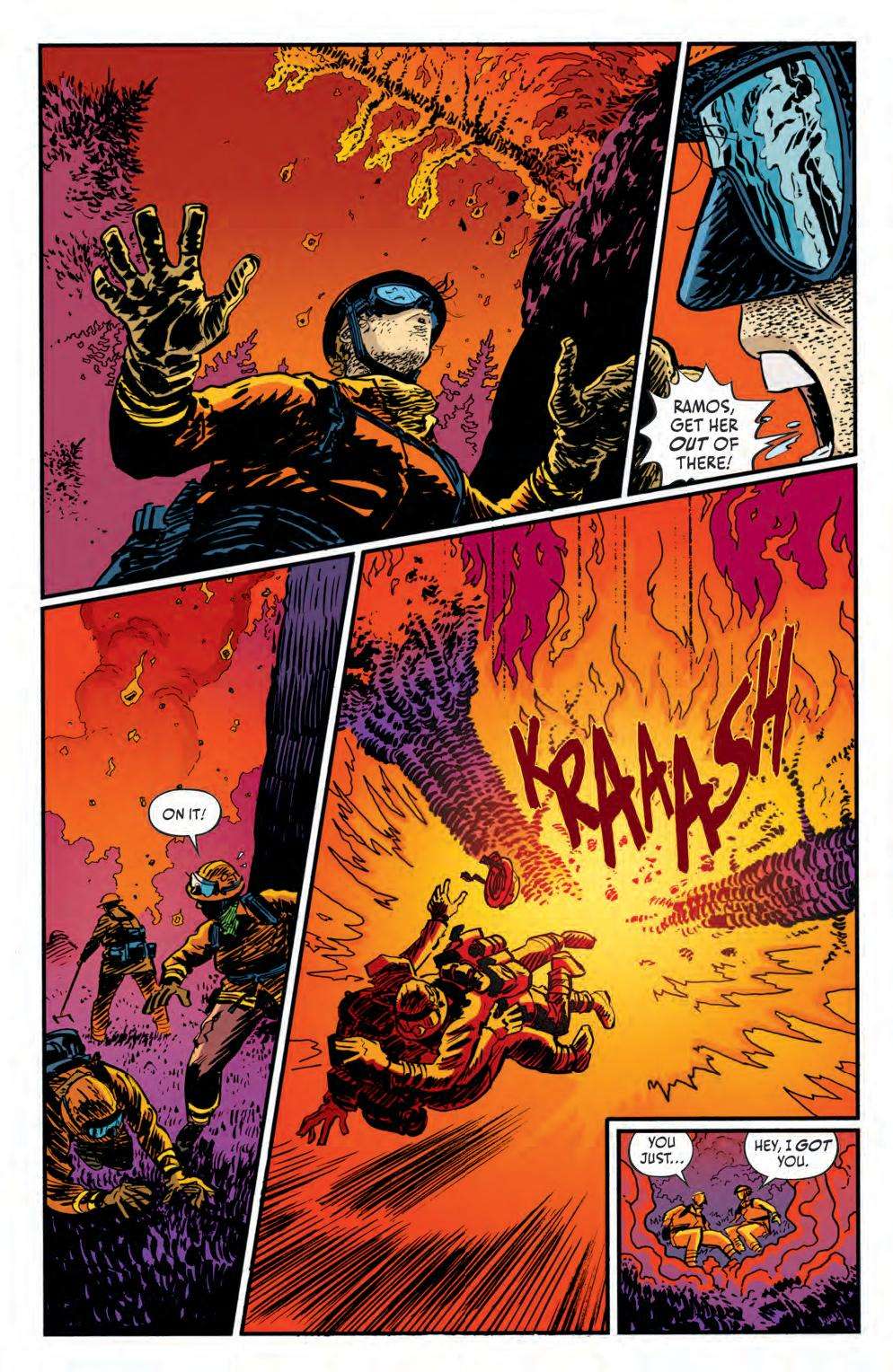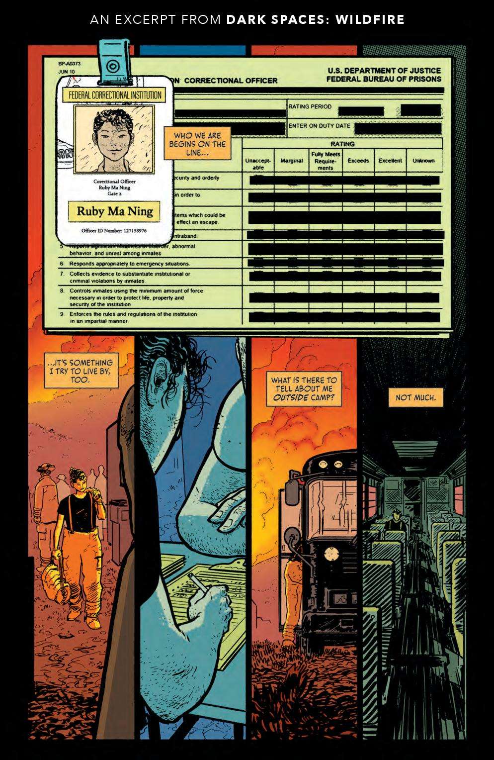 DARK SPACES: WILDFIRE, Scott Snyder, and rising star artist Hayden Sherman craft a tale starring prisoners turned firefighters who try to pull off a heist in the midst of a raging wildfire and risk everything for a chance to escape.