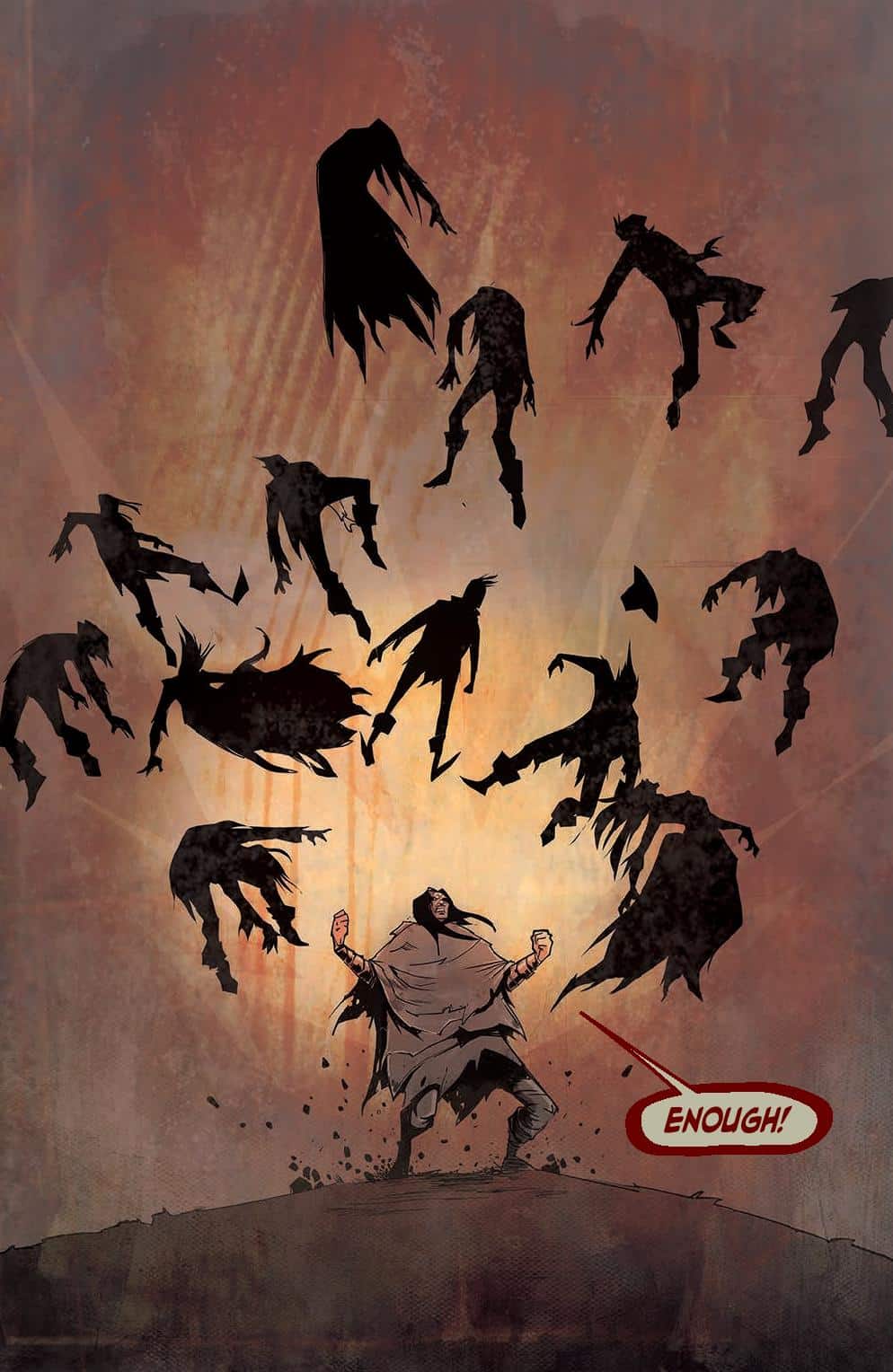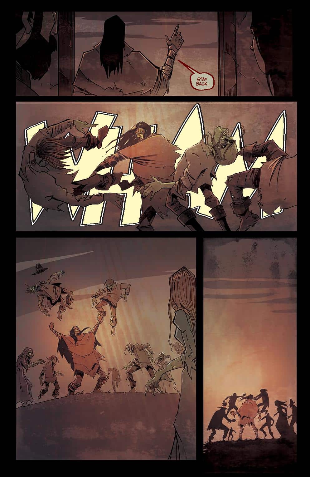 Brynmore Ends! The ancient curse that once almost doomed Turner Island, an army of the undead, has taken over the island and driven Mark, Sophie, and Becca back to the last safe haven. Only the power of Brynmore might make a difference… but will it lead to their victory or to their doom? Read the finale of the latest horror masterpiece from Steve Niles and his October Faction collaborator, Damien Worm!