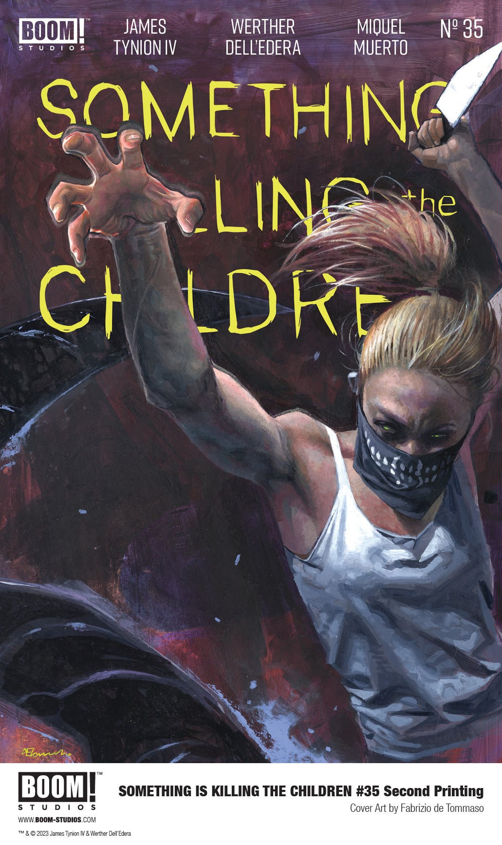 In response to the overwhelming support from retailers and fans, BOOM! Studios has announced Something is Killing the Children #35 Second Printing (OCT238020), featuring brand new cover art by acclaimed artist Fabrizio de Tommaso, available in stores January 3, 2024.