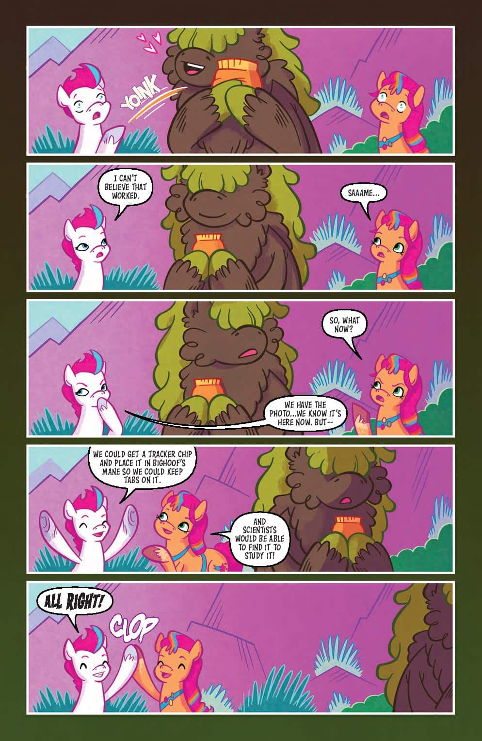 Campers, this is it! The entrance is clear, and everypony is ready to go home… after one last campfire! Plus, Sunny and Zipp finally have the evidence they need to prove Bighoof is real and become super famous investigators/scientists/camp counselors. But is there more to life than becoming an investi-sci-counselor-ist? Only Bighoof has the answer…which is unfortunate since she can’t talk, but I’m sure our investi-sci-counselor-ists can figure out what “Graaahhh, grrr hrgh grah” means in Bighoof!