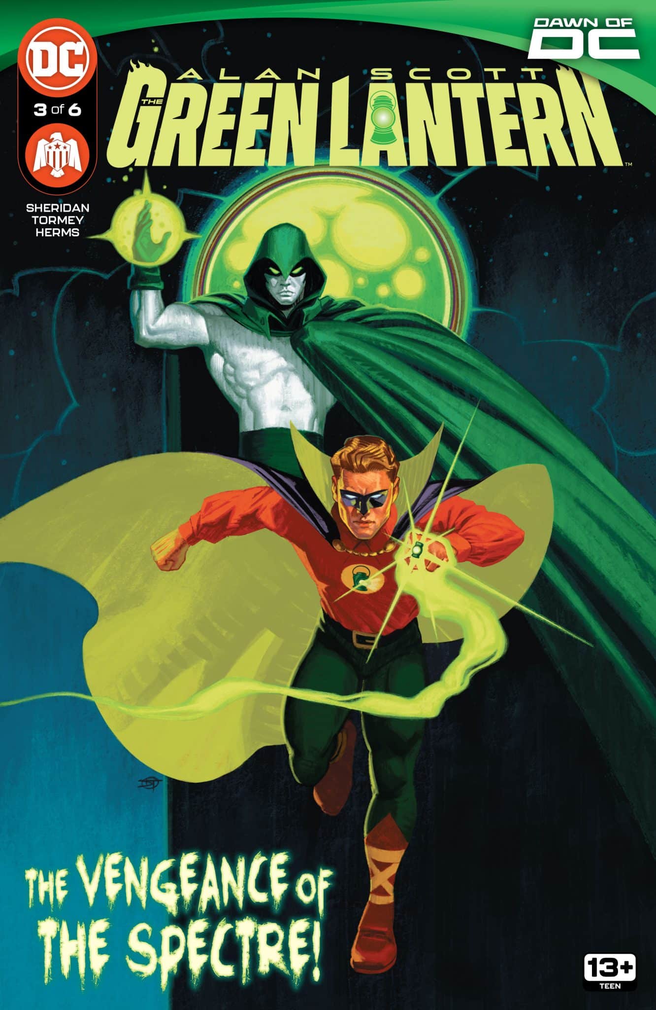 Written by Tim Sheridan, Alan Scott: The Green Lantern #3 has the Green Lantern teaming up with the Spectre. Each are on the case to figure out who’s murdering men and if someone is trying to cover it up. The issue continues the tease that what’s going on is tied to Alan’s past. But, it’s Alan’s struggle with his past, and present, that’s the most interesting.