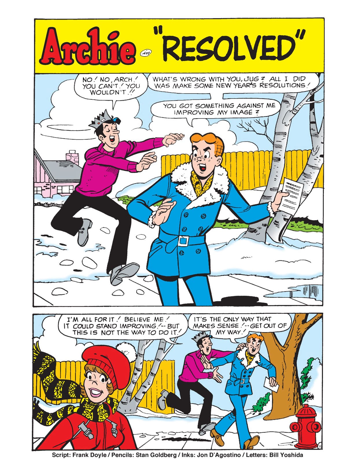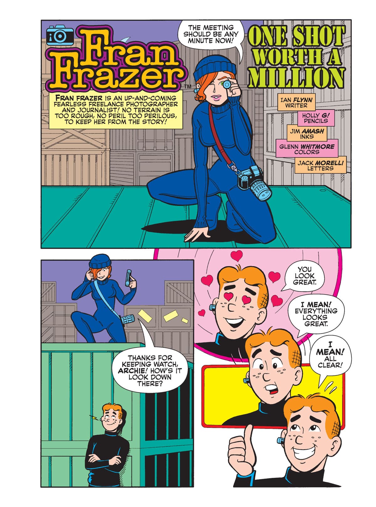 TWO BRAND NEW STORIES! First, Fran Frazer and romantic rival Hal Davis help Archie and Veronica unmask corruption during an investigation! Then, an opportunity to model alongside Young Doctor Masters sends Betty and Veronica into a toxic “health” competition until they discover that his “perfect specimen” is someone unexpected.