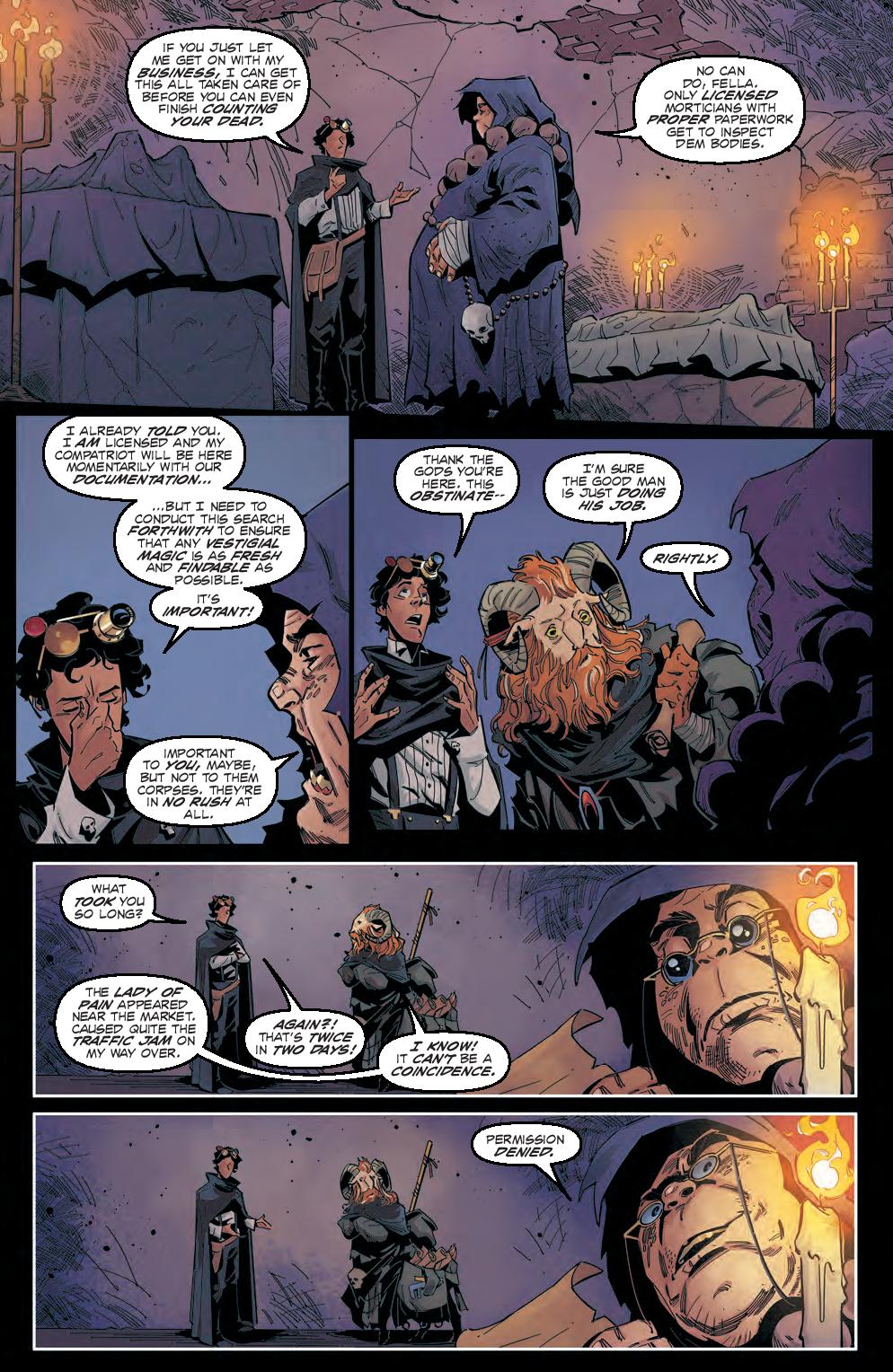 Finder, now a part of a group of Dustmen morticians, still has amnesia, but that’s far from his biggest problem. A series of corpses found around Sigil have traces of a strange magical energy that’s tearing the fabric of reality itself, and if the murderer isn’t stopped soon, Finder won’t have a chance to find out who they really are before the end of everything. The mystery deepens in the series inspired by the new Dungeons & Dragons sourcebook!