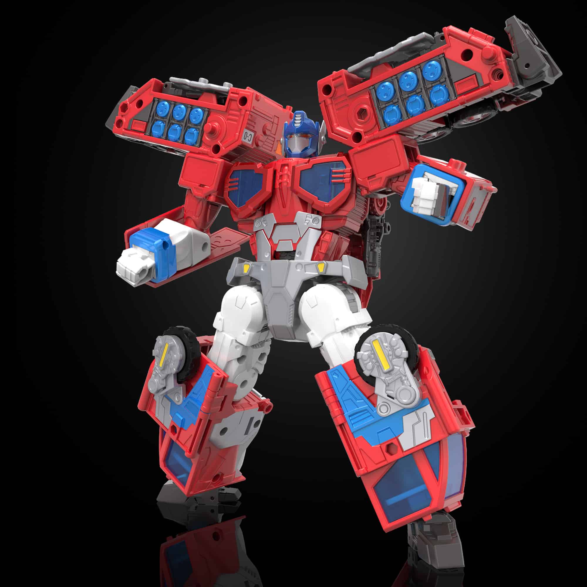 In 2001, TRANSFORMERS: Robots in Disguise reintroduced our heroic leader, Optimus Prime, with a firetruck alt mode. This HasLab rendition of Optimus Prime refreshes this unique alt mode with deco based on the animation and includes classic features from the original toy. This figure will stand 8.5 inches tall in robot mode and comes with blaster and two Matrix of Leadership accessories.