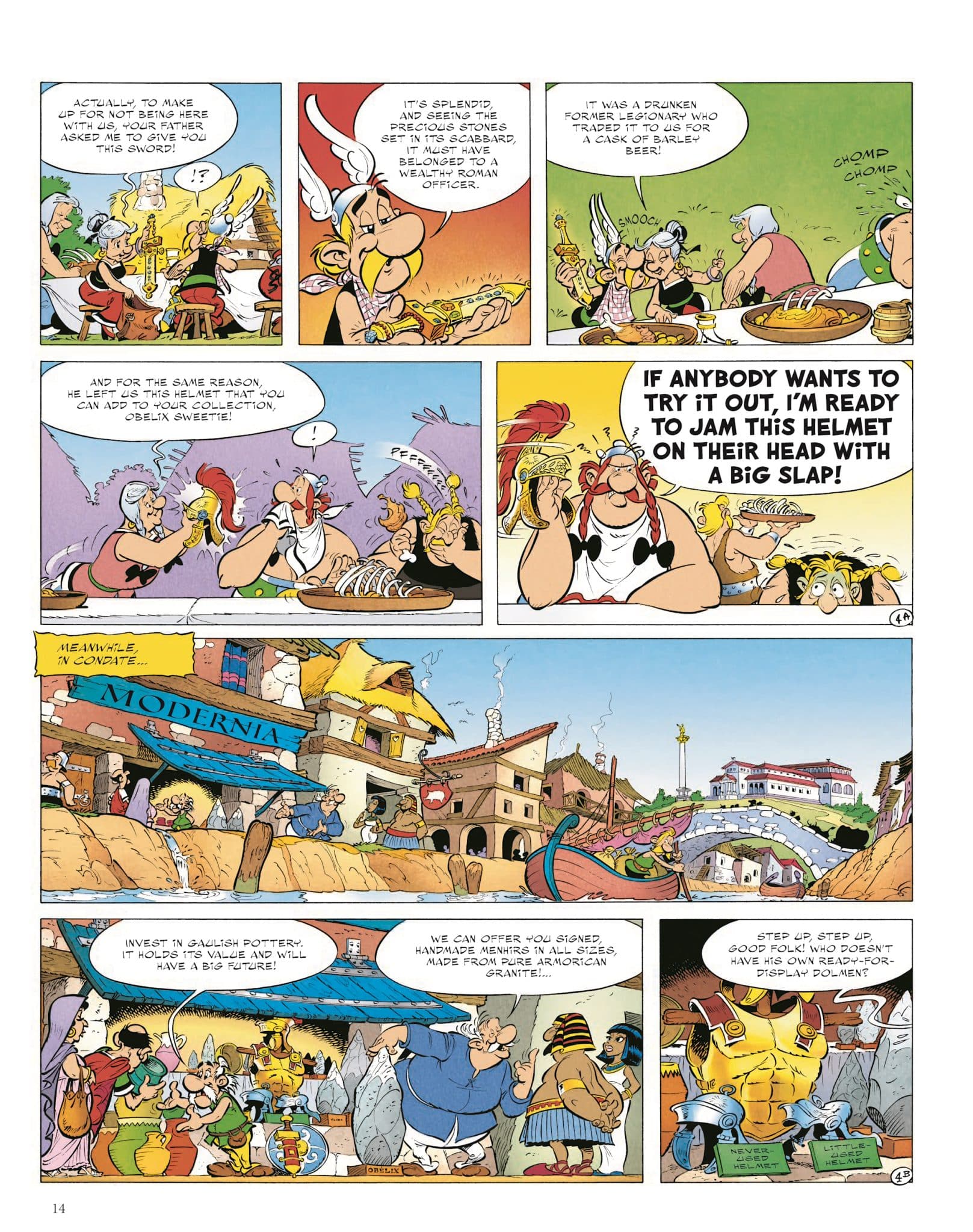 Then in “Asterix and the Class Act,” 14 short stories including the day Asterix and Obelix were born (in the middle of a village fish fight), How Obelix goes back to school, Fashion in Ancient Gaul, How Dogmatix helps the village cockerel win a duel, and how he is adopted as a Roman mascot, and the story of the creation of Asterix.