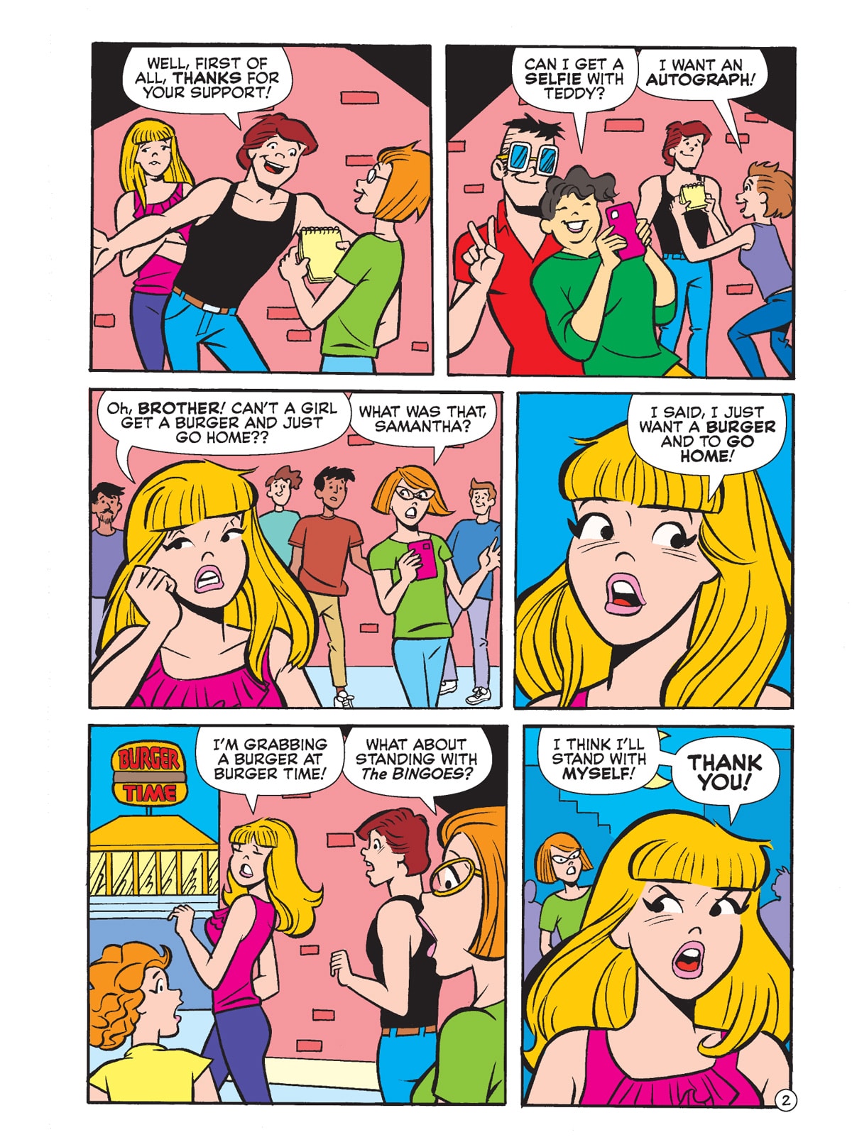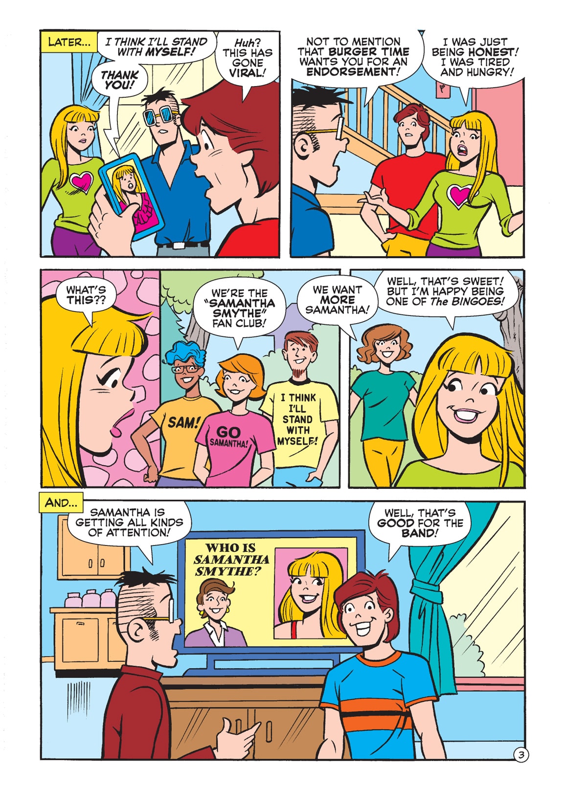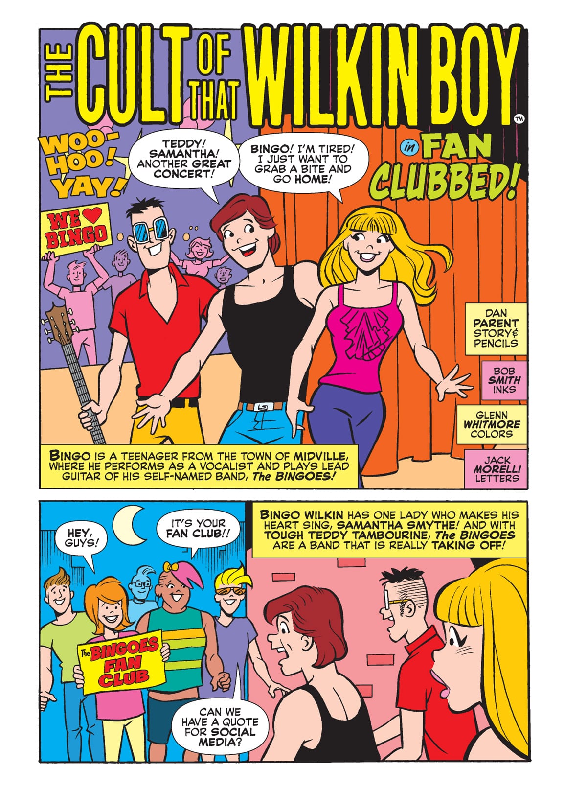 TWO BRAND NEW STORIES! First, Archie saves the day for Shield with the super-power of super-fandom! Then, Bingo Wilkin’s new song has gone viral! Unfortunately, the song is so popular that Bingo can’t go out in public without being swarmed by fans. How will he manage to celebrate his anniversary with Samantha? Maybe Archie and Jughead can help!