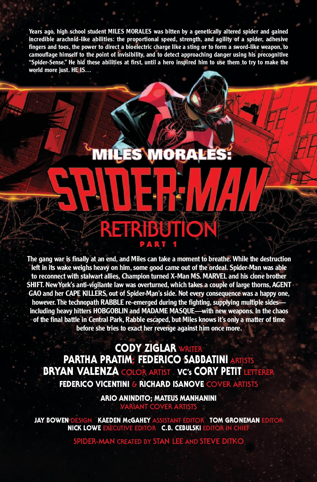 Spider-Man needs rest. New York City needs to heal. But the most dangerous super villain in Spidey’s history needs Miles Morales to die. The gauntlet is thrown, and the events of this issue setup the explosive MILES MORALES: SPIDER-MAN #300 next month!!!