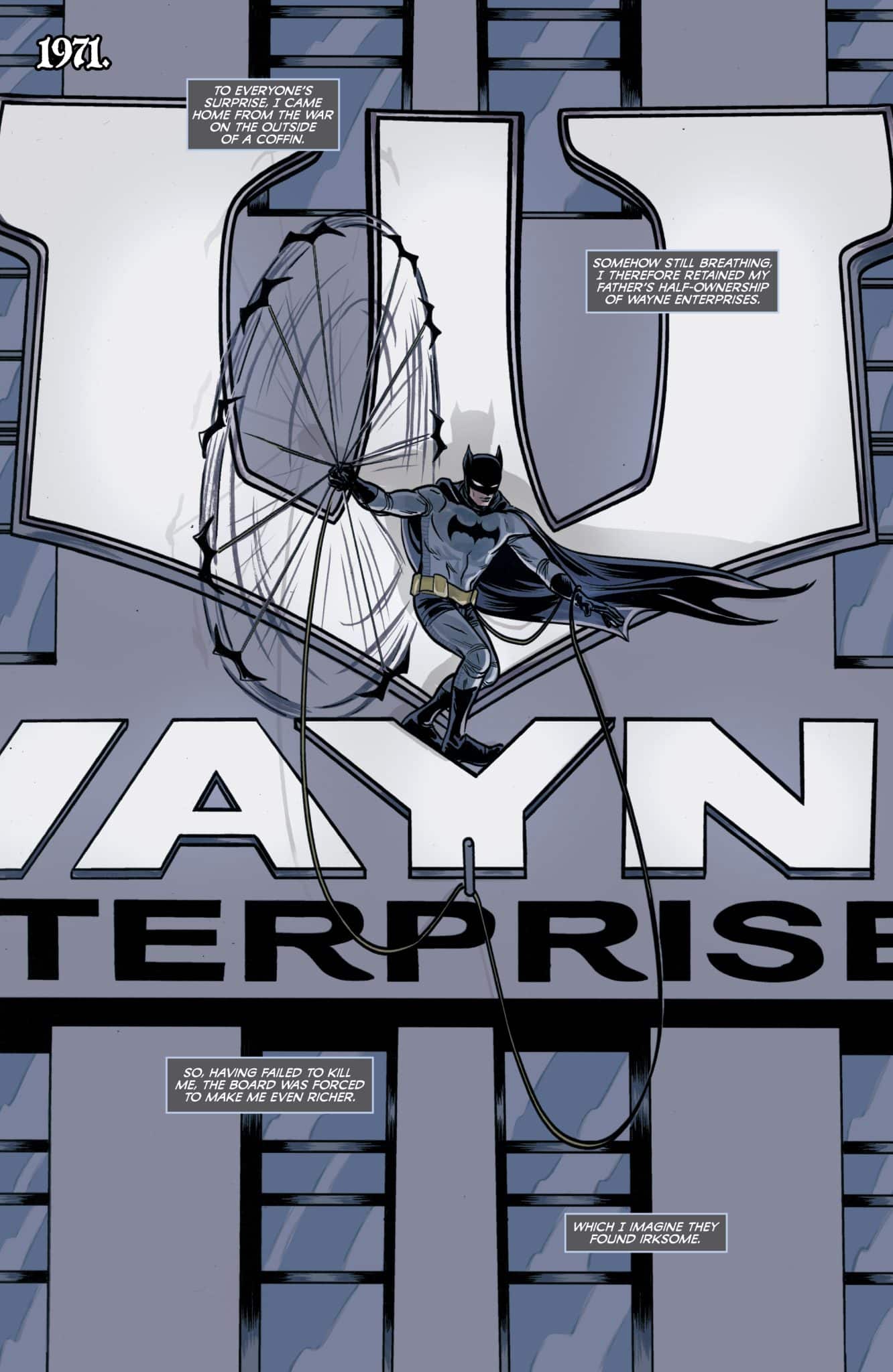 A ROBIN RISES FROM THE ASHES! Bruce Wayne discovers he may wield more power without a mask as he reenters society to rave reviews. But when an ambitious Carmine Falcone takes over Gotham with the help of his False Face Society, Batman realizes the only way to win the war is with allies. Will the next generation be up to the task? Or is Gotham doomed to continue living in this dark age?
