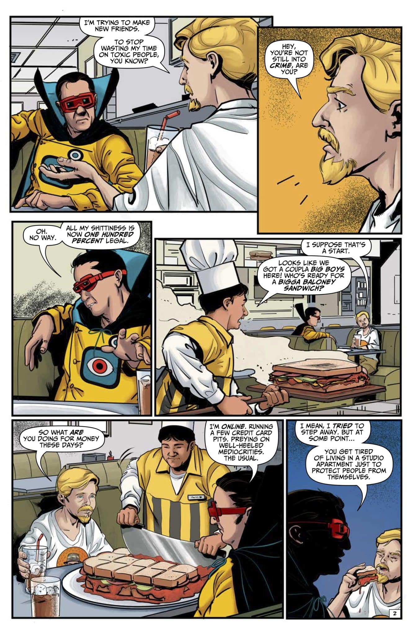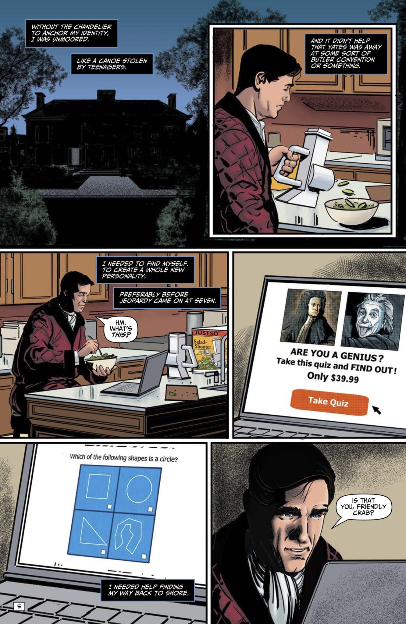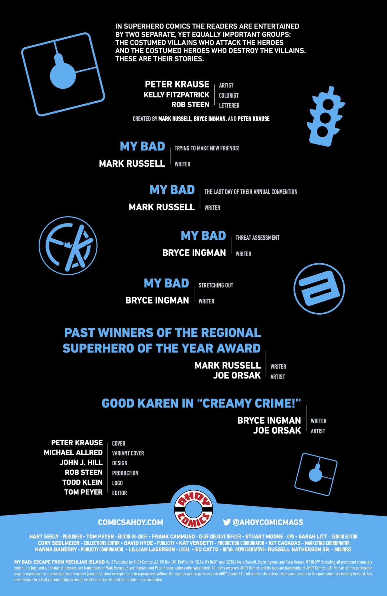 Continuing “One of—if not the—funniest superhero parodies I’ve ever read” (Comics Beat). Banned from his favorite baloney restaurant, retired crimefighter THE CHANDELIER seeks redemption at a sincere-seeming, paywalled website. In the Peculiar Islands, newly installed Governor (and former US President) AMAZING ADAMS faces off against Professor Octopus, a new character you’ve never heard of!