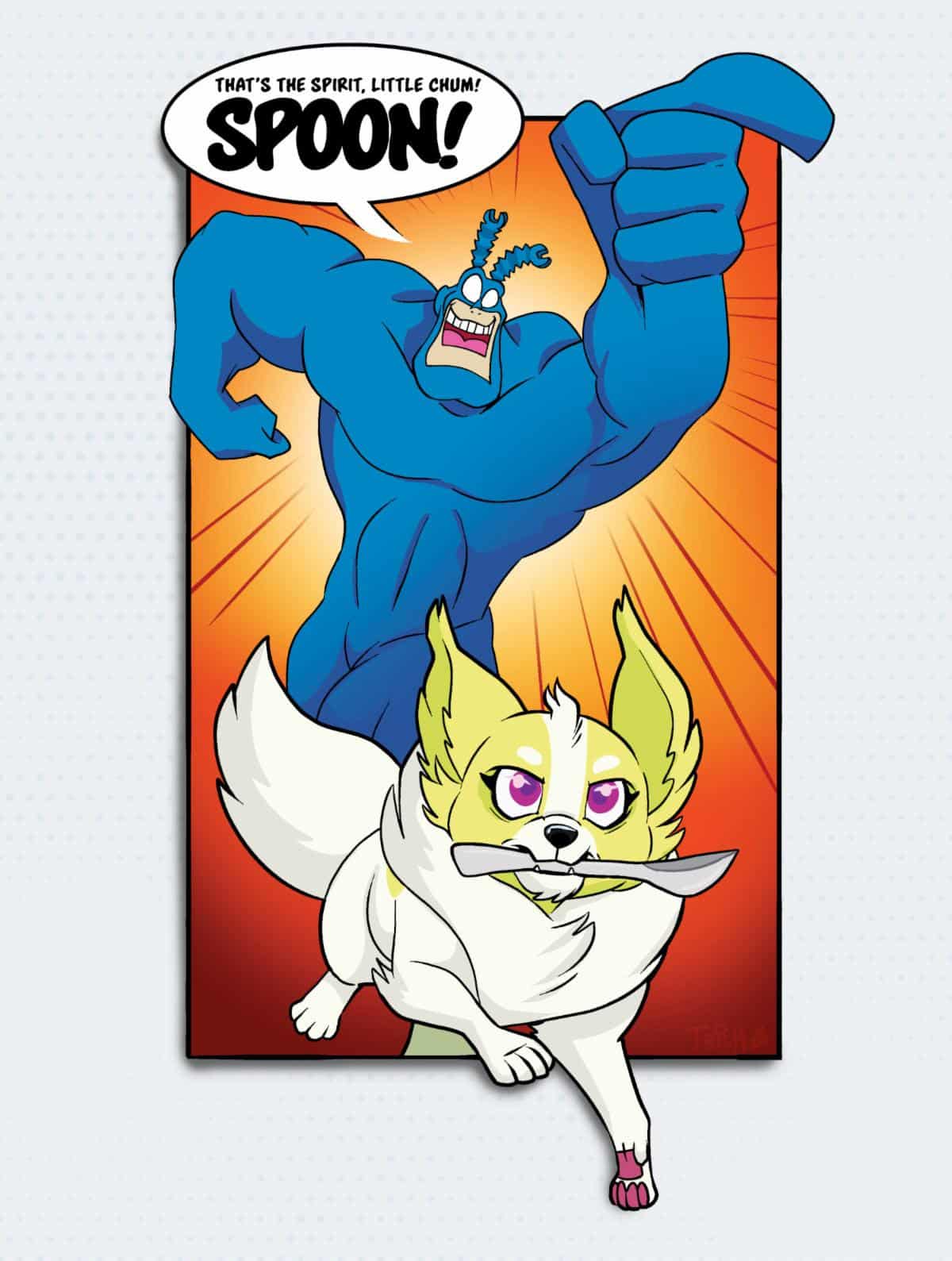 An escaped (but super-powered) mental patient in the comics, The Tick patrols The City with his trusty sidekick Arthur, a one-time accountant turned superhero sidekick with a moth costume. His wild universe of characters include Paul the Samurai, Man-Eating Cow, and Chainsaw Vigilante. He is, perhaps, most often noted for his memorable battle call, “SPOON!”