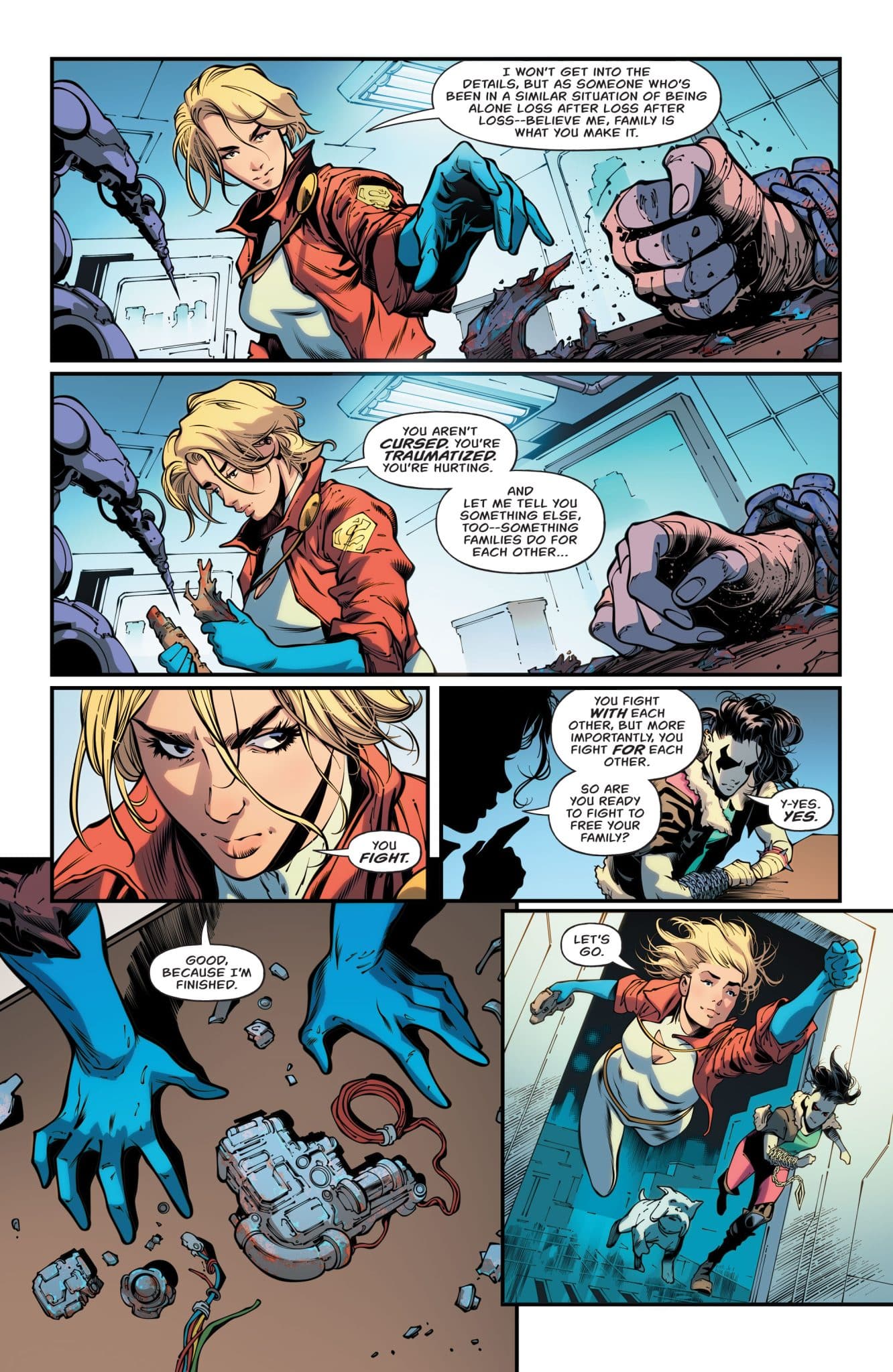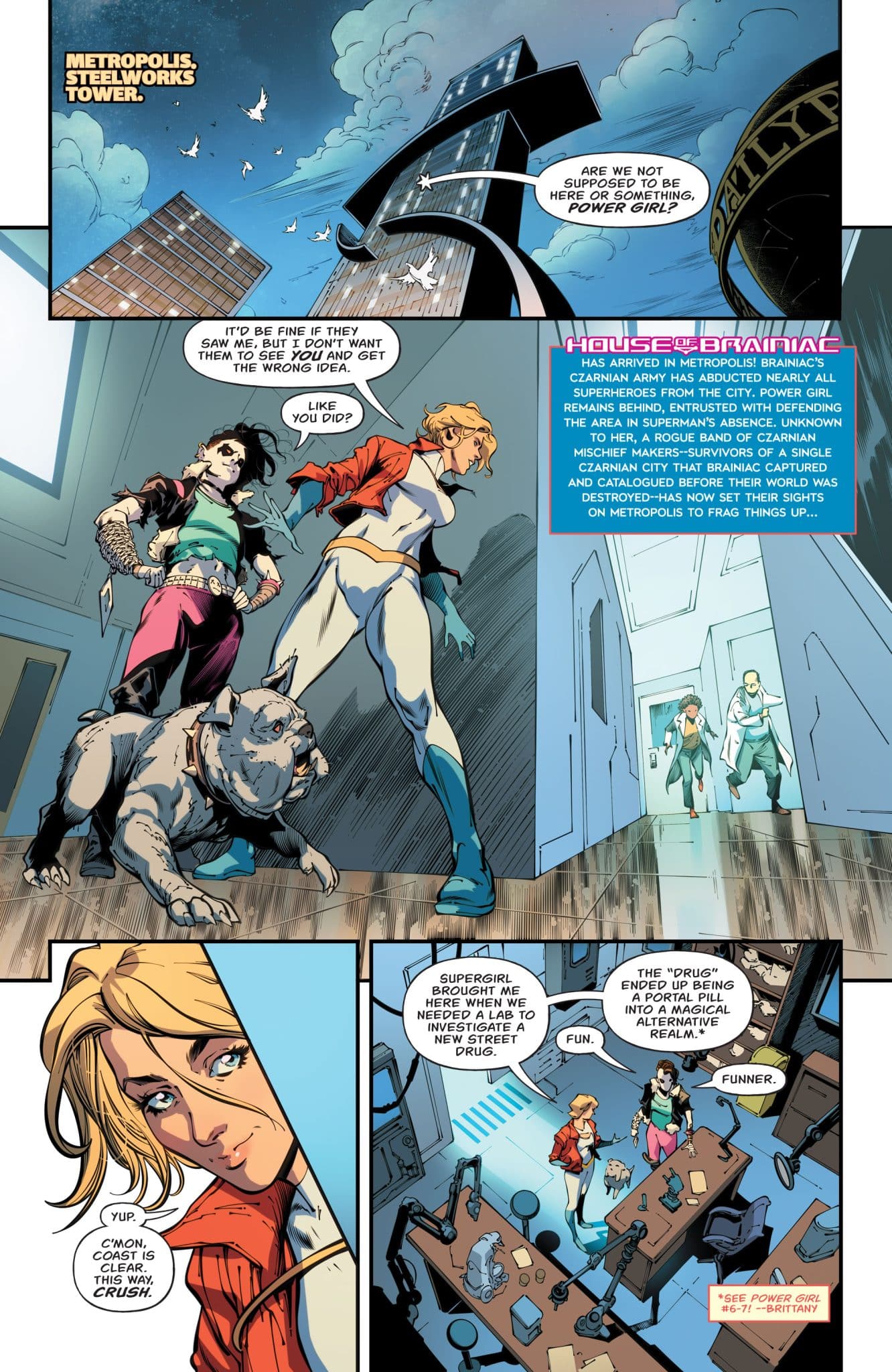 HOUSE OF BRAINIAC TIE-IN! BREAK OUT! Power Girl joins the Holliday Girls in this action-packed House of Brainiac tie-in! Goblin and his goons may have the neighborhood, but they’ll never break the spirit of our local hero and her new allies. With the biker gangs brawling, it’s now up to Crush and Paige to shut the Czarnians down for good. Can the power of brains, brawn, and beauty prevail?