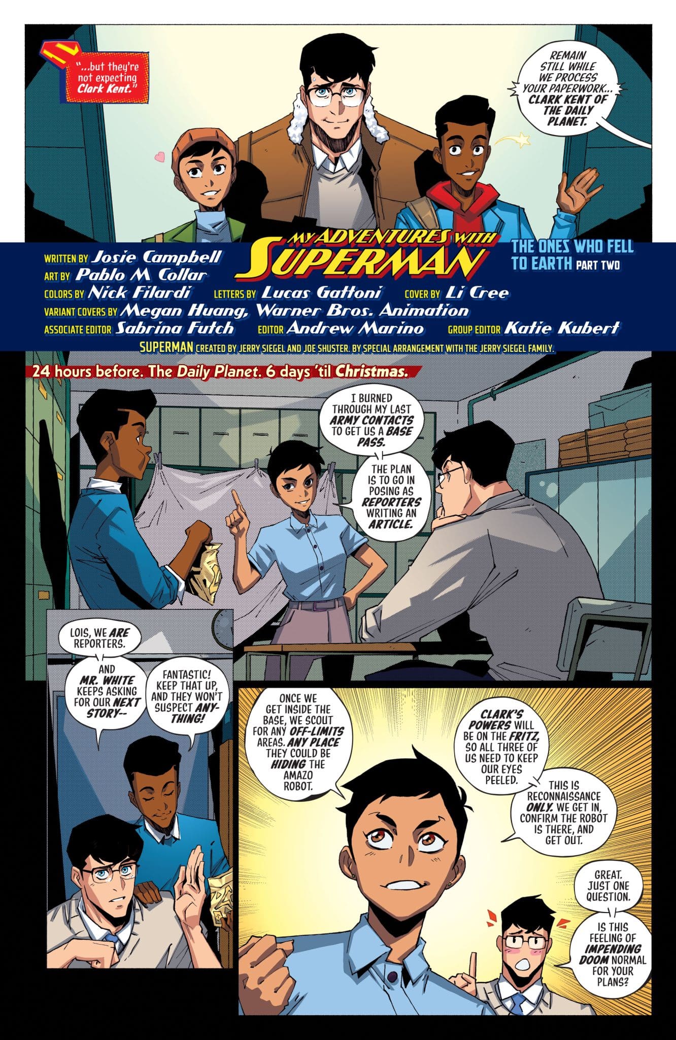 After the mysterious android is captured by a covert military group, Superman realizes he can’t just bust through a government facility and take what he wants. No, this looks like a job for mild-mannered journalist Clark Kent!
