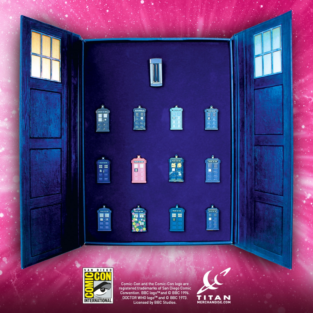 Titan Booth #5537 is the only opportunity for US Doctor Who fans, who missed out last year, to buy this EXCLUSIVE Thirteen Piece TARDIS Enamel Pin Collection. We’ve located a handful of sealed, mint-condition collections and we’re bringing them to the show! Please note: this one-of-a-kind TARDIS collection will be available from Titan Booth #5537 from Preview Night (Wednesday July 24th). Numbers are SUPER LIMITED. First come, first served!