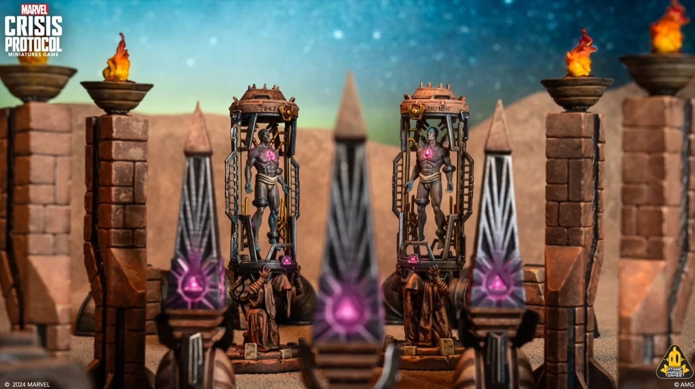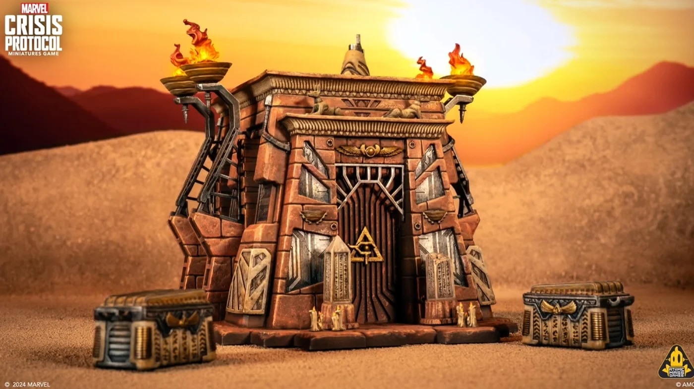 Apocalypse is coming… to Atomic Mass Games‘ tabletop miniature game Marvel: Crisis Protocol. The massive figure was revealed as well as a tease as to what we can expect from it and some terrain to go with the release.