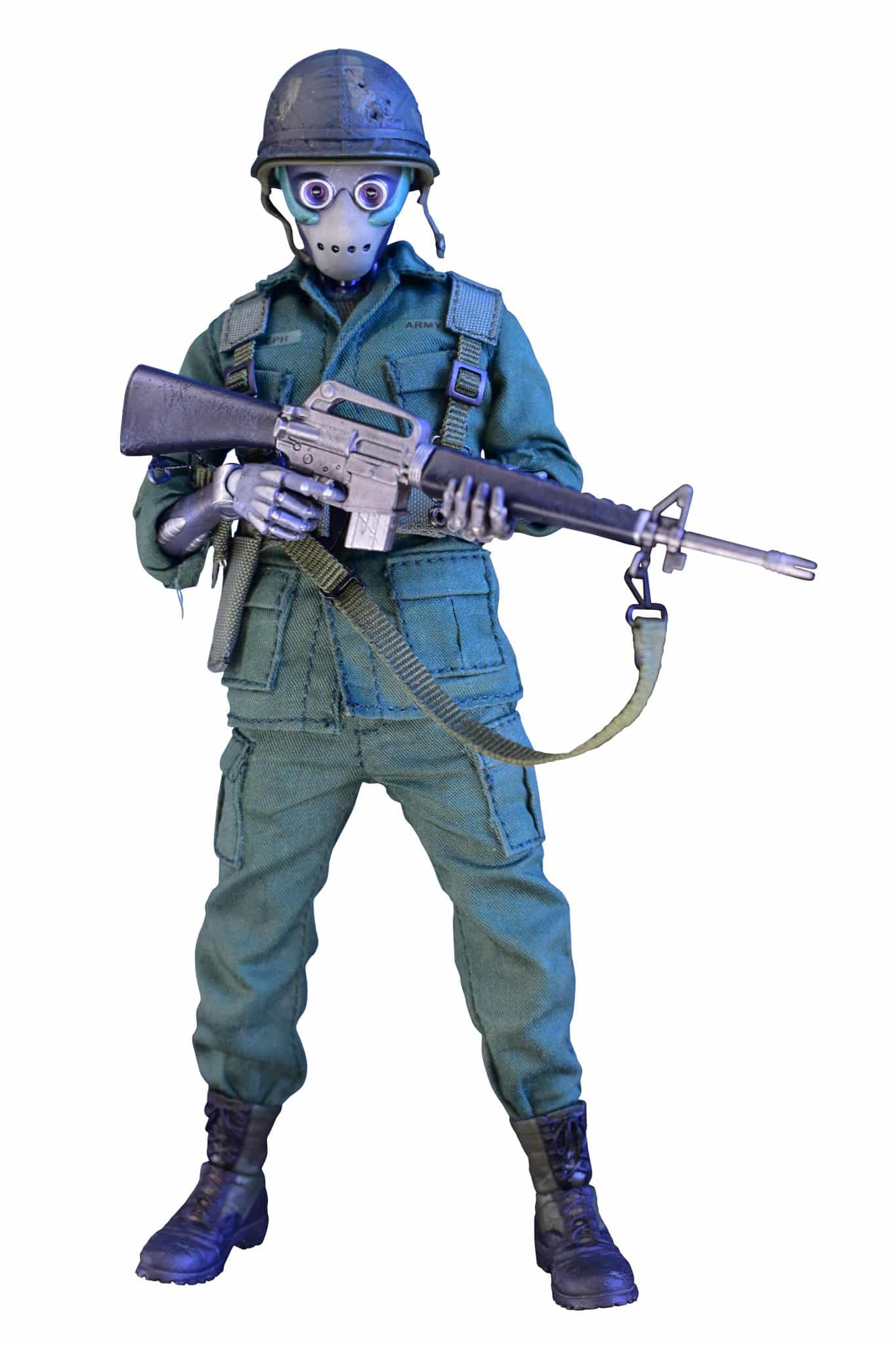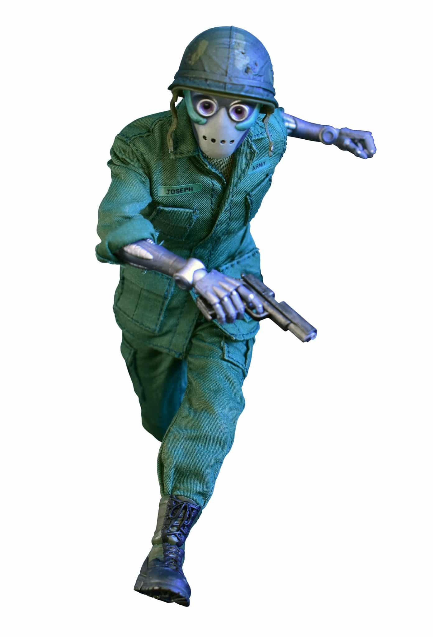 The all-new, One:12 Collective is molded from plastic and hand-painted in stunning detail. The new action figure also comes packaged with a helmet, jungle fatigues, combat boots, and removable chest harness, belt and gun holster. Standing approximately 17 centimeters tall (6.7 inches), it also features a slew of Vietnam War inspired artificial accessories, including one bayonet knife, a handgun with magazine, a landmine, two grenades, two gun FX and changeable hands. Loaded with over 28 points of articulation, this can’t-miss action figure also comes with its own One:12 Collective display base complete with logo and adjustable display post. Each One:12 Junkyard Joe figure is packaged in a collector-friendly box. Pre-orders for for the Junkyard Joe Collectible Figure begin August 28 as a Mezco Direct Exclusive (MDX).