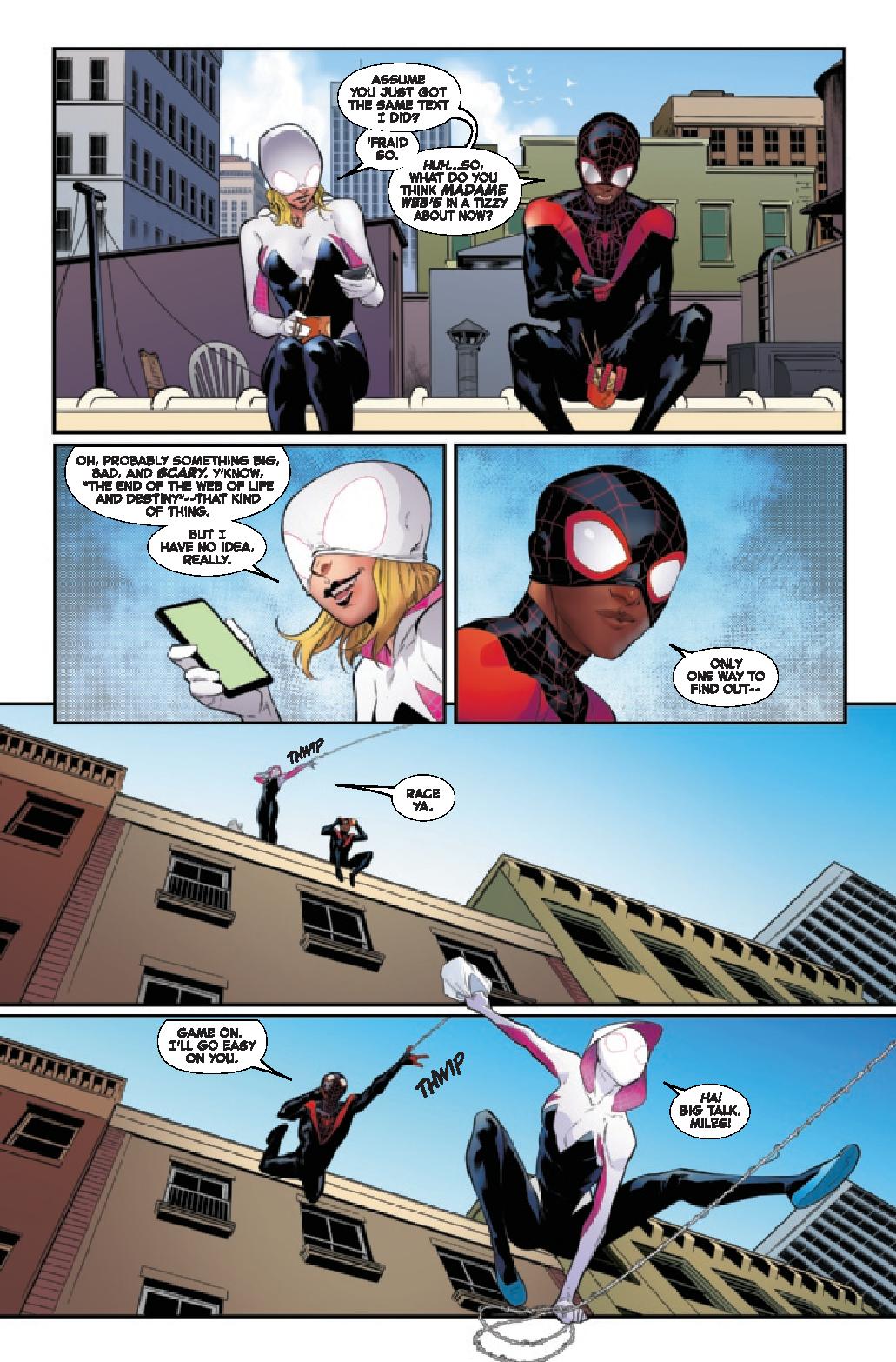 Every Spider-Character you love! (and some you haven’t met yet!) May the first meeting of the Spider-Society commence! That’s right, every Spider-Character you love (and some you haven’t met yet) all show up in the same room for the most crazy meeting the Multiverse has ever seen. That’s right, every Spider-Person will be in the same room for the most crazy meeting the Multiverse has ever seen! Don’t miss the start of this incredible new miniseries!