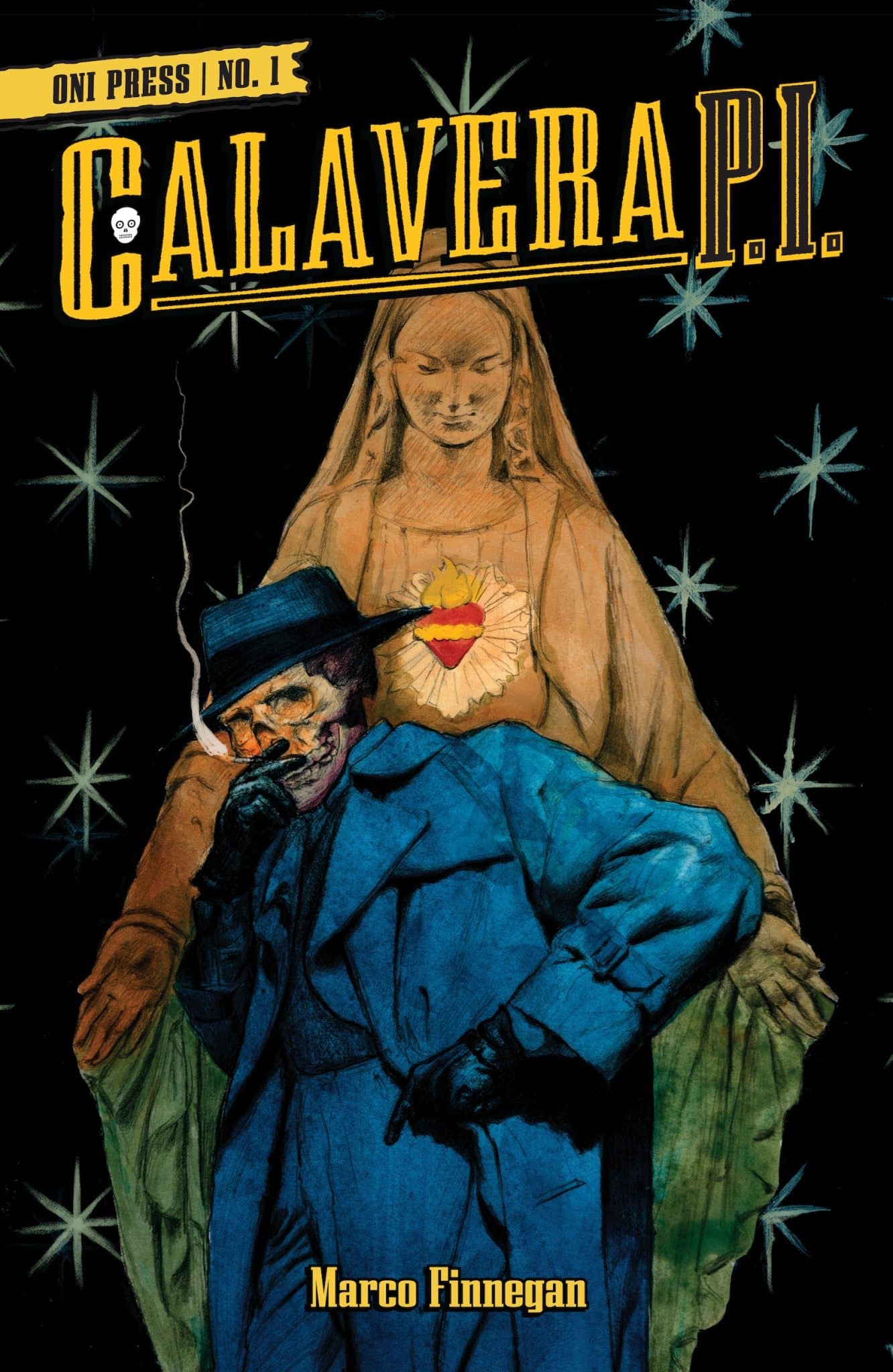 Oni Press has unveiled Calavera, P.I. – a daring new four-part series coming this November from cartoonist Marco Finnegan! On November 6th, walk the shadow-shrouded alleys of Hollywoodland to solve the mystery of Calavera—a newly resurrected private investigator whose first case is about to straddle the blood-soaked boundaries between the living and the dead . . .