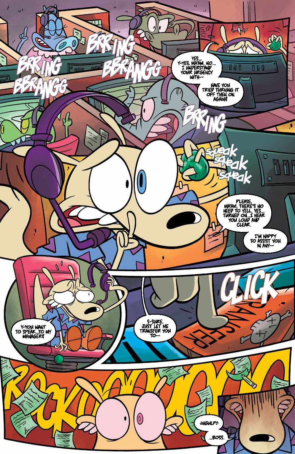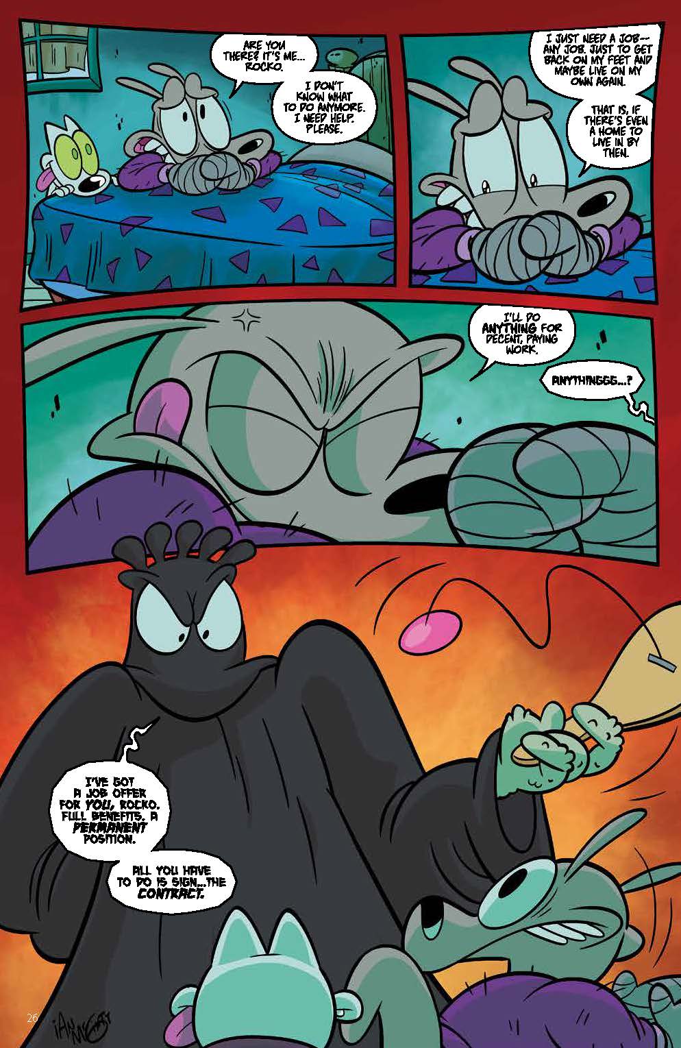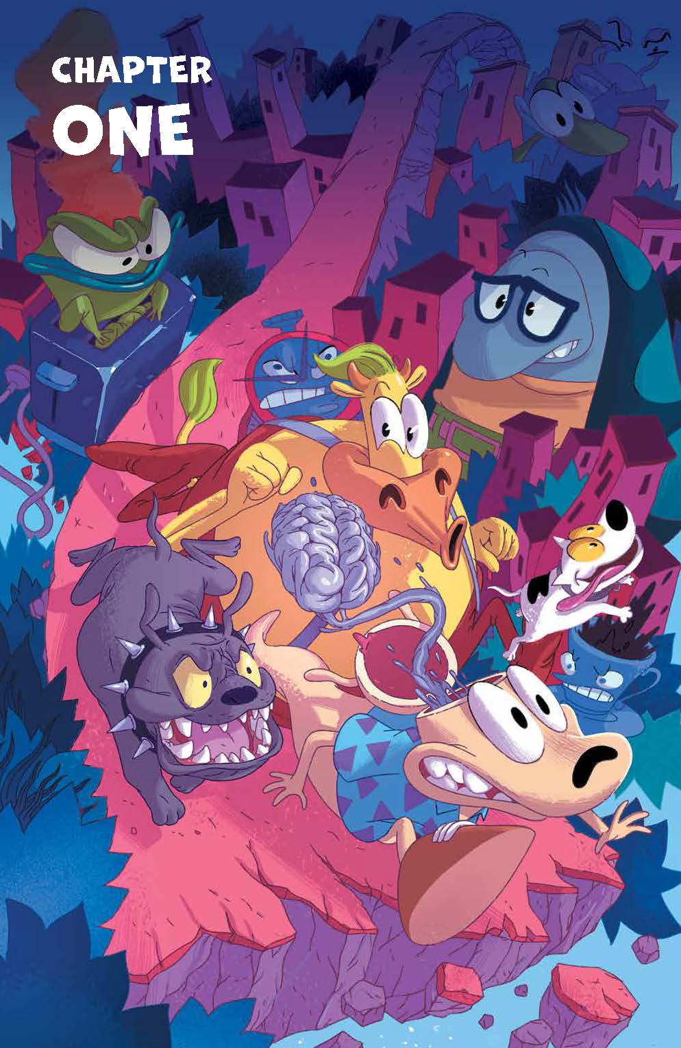 But even in the midst of this techno-utopia, there’s something not quite right with Rocko’s fellow citizens. While Rocko takes two weeks to chill and unplug from technology, the rest of the town seems to be going mad. When danger comes knocking at his door, the newly zen wallaby will have to choose whether to stay barricaded within his home or venture forth into a wasteland of mindless citizens.
