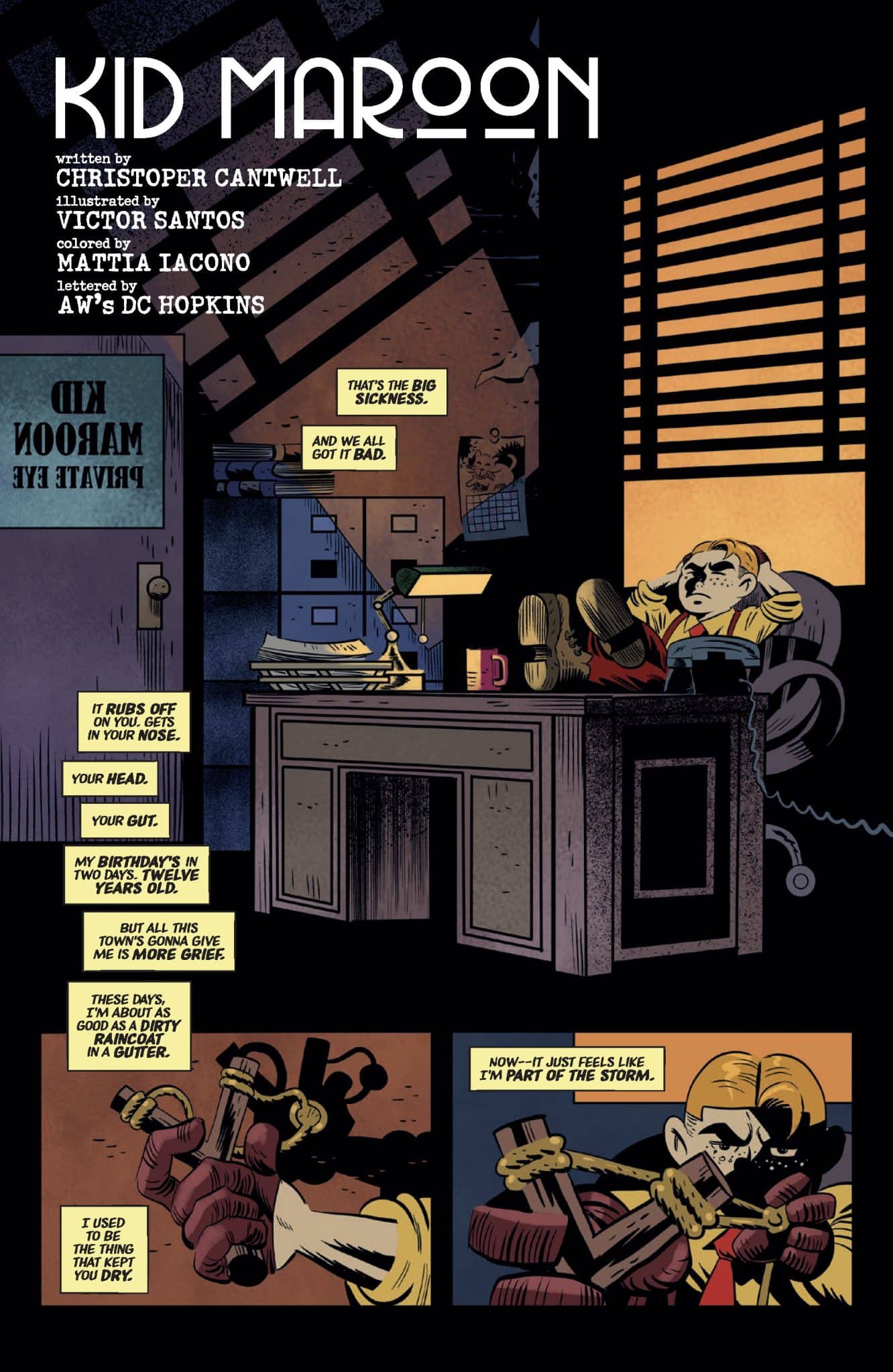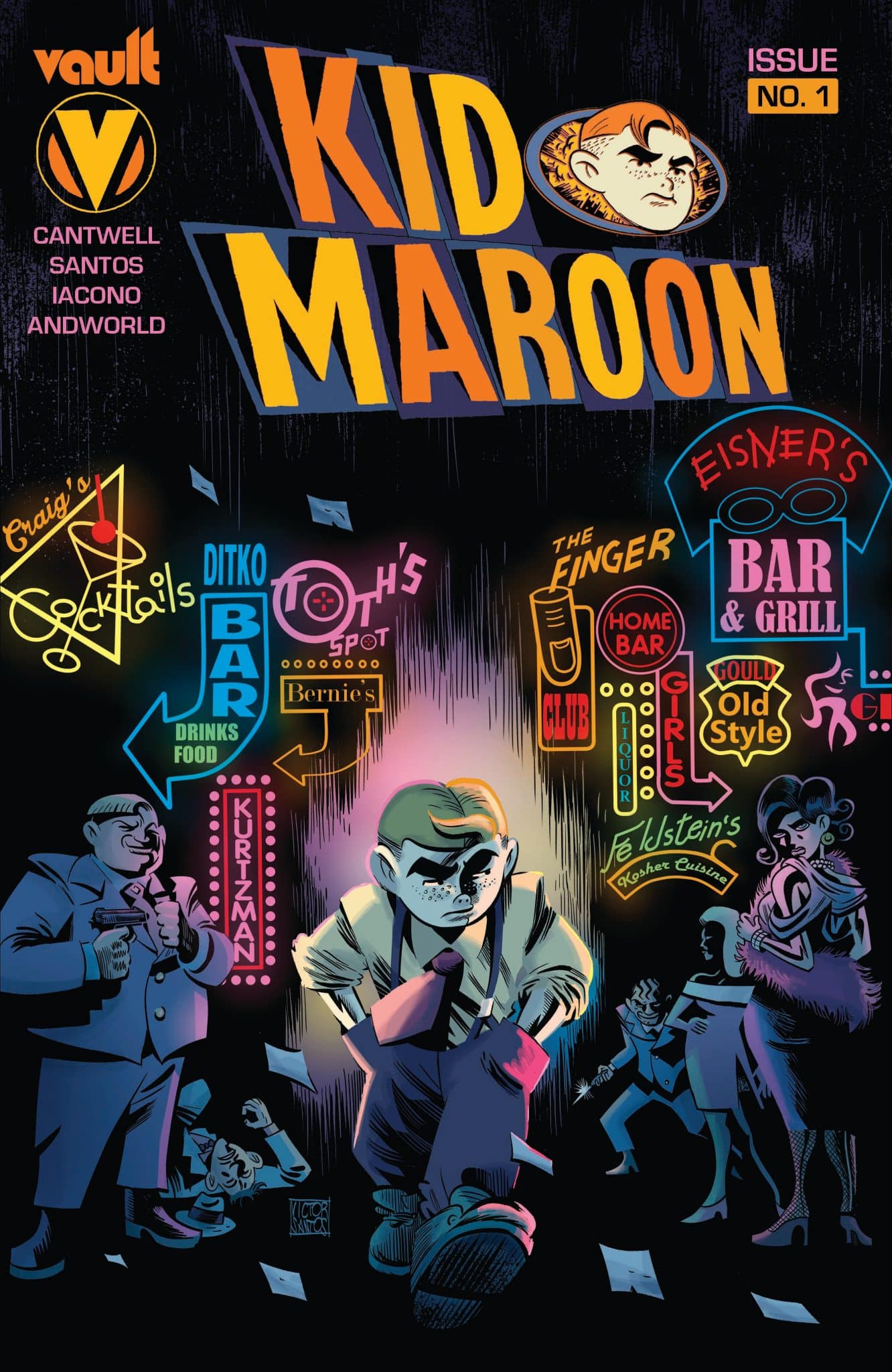 Vault has unveiled Kid Maroon, the new neo-noir comic series based on the storied 1940’s comic strip created by the legendary cartoonist, Pep Shepard. The new Kid Maroon series will be written by Christopher Cantwell, drawn by Victor Santos, colored by Mattia Iacono, lettered by Andworld Design, and designed by Adam Cahoon.
