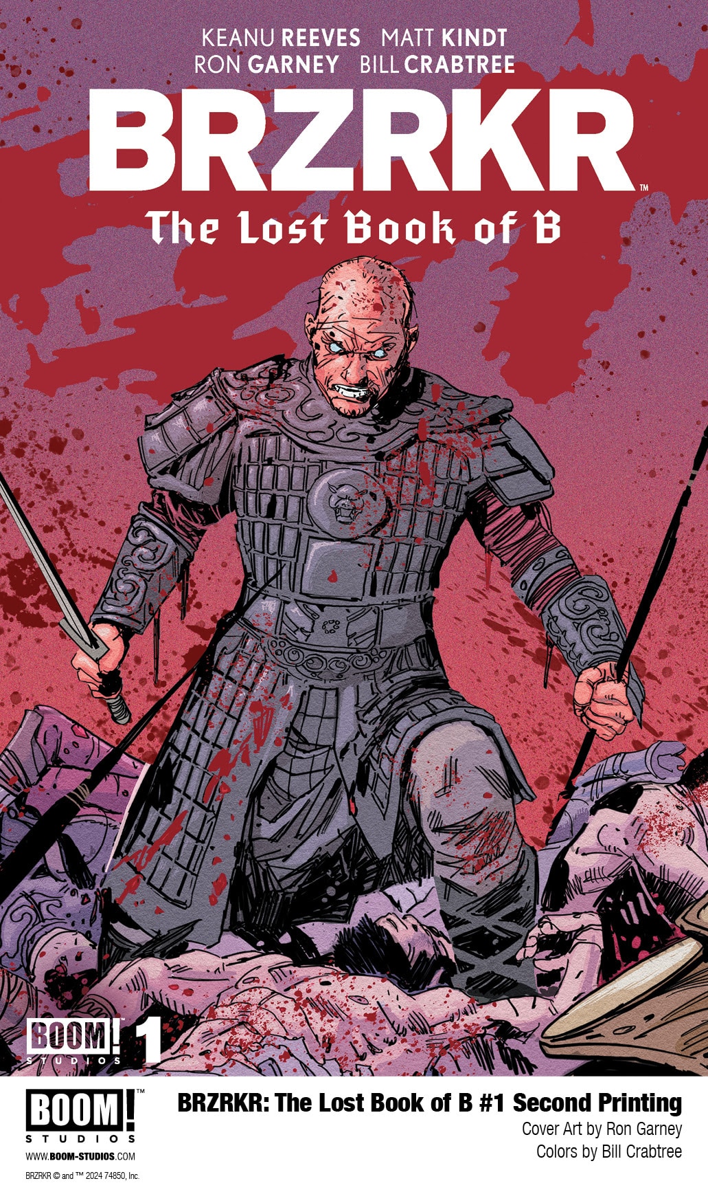 BOOM! Studios today revealed the highly anticipated BRZRKR: The Lost Book of B #1 has sold out at the distributor level! Series creator Keanu Reeves, New York Times bestselling author Matt Kindt, legendary artist Ron Garney, and the iconic Bill Crabtree–the original team behind the record shattering BRZRKR–reunite for the first time since the series’ conclusion for the next chapter in the second volume of BRZRKR: Bloodlines with BRZRKR: The Lost Book of B.