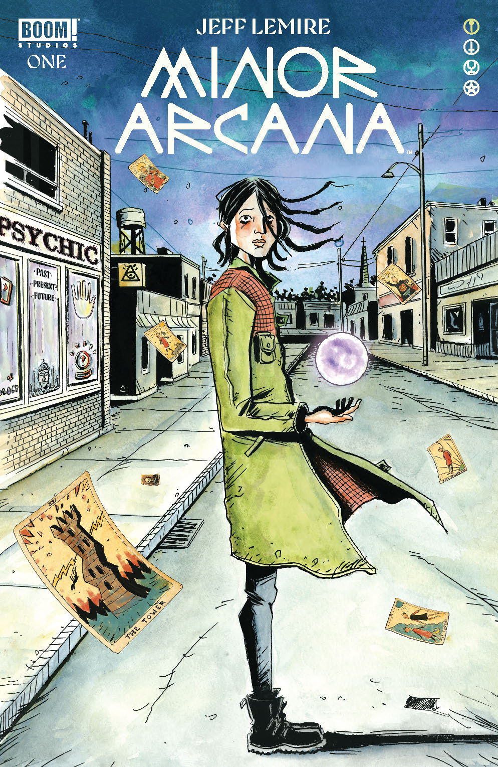 Theresa, the daughter of a small-town “psychic” fraud, returns home to care for her ailing mother, however begrudgingly. But when Theresa discovers that there may be more to the magic than she originally believed, she’ll find herself caught up in a town that desperately needs her help… Jeff Lemire‘s Minor Arcana #1 kicks off a melancholy tale that teases the journey ahead.
