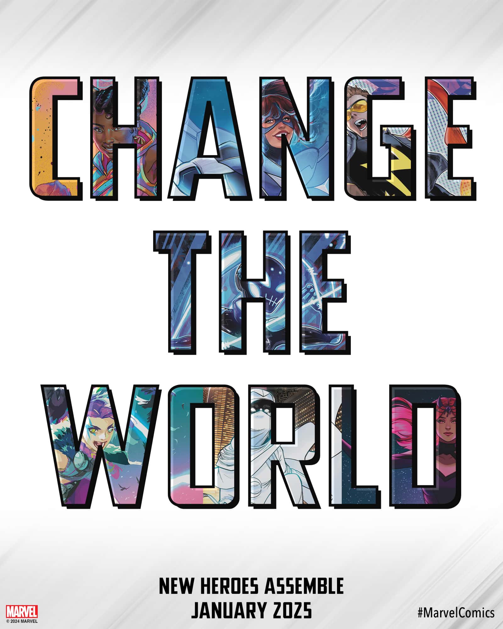 Marvel dropped a teaser at something that’s coming in January 2025. “New Heroes Assemble to Change the World,” any guesses as to what’s coming?