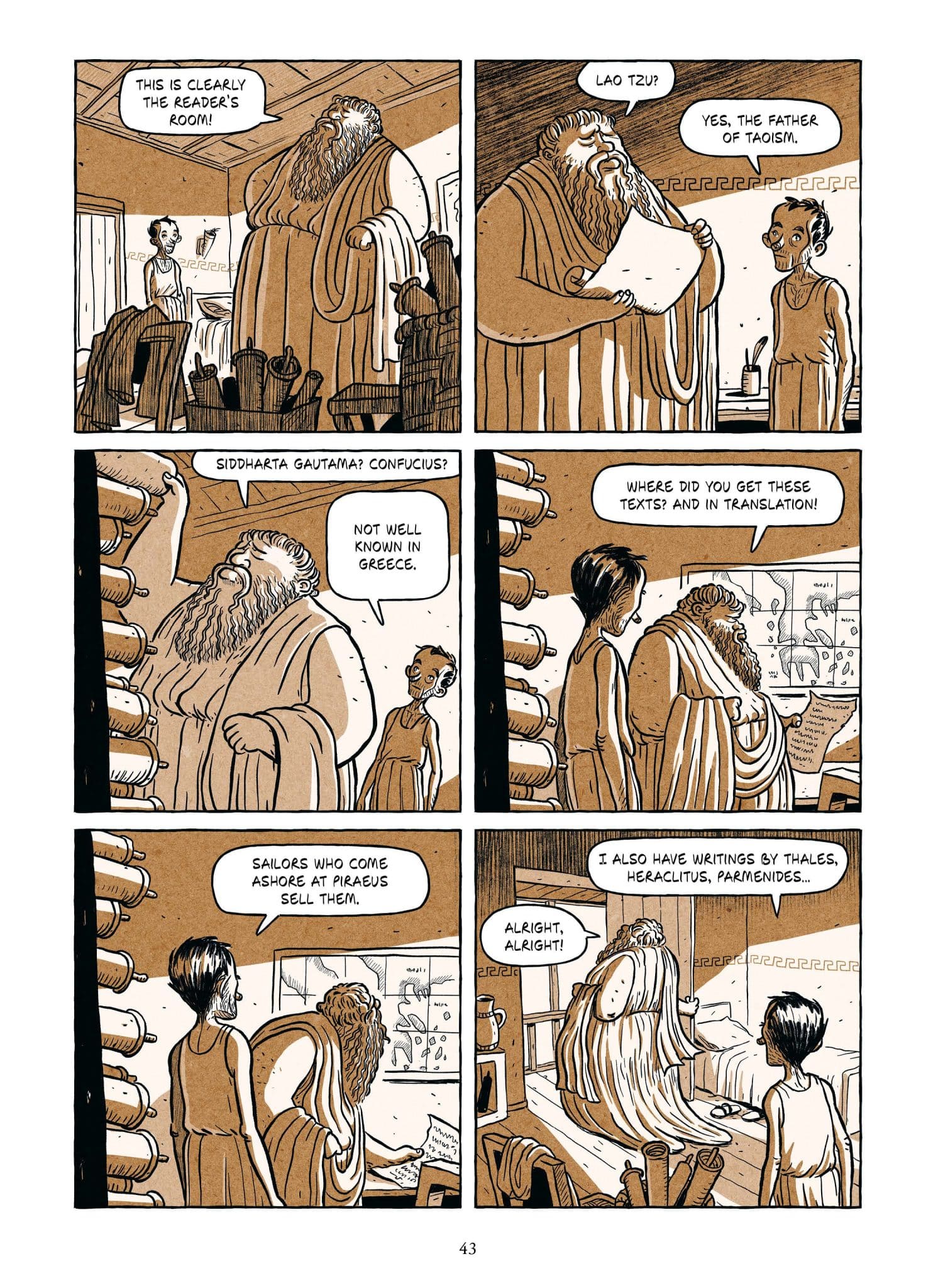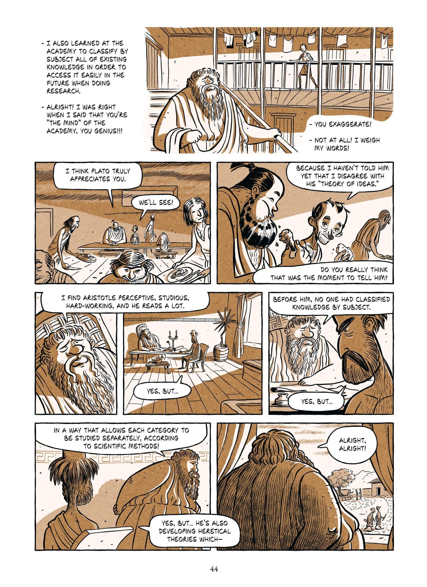 Most of Aristotle’s works that have endured to this day are thought to be lecture aids for his students. The fact that these have had such an astounding influence on every school of Western thought despite likely not being intended for publication speaks to Aristotle’s monumental legacy which Papadatos and Apostolidis carefully reconstruct in an illuminating graphic novel.