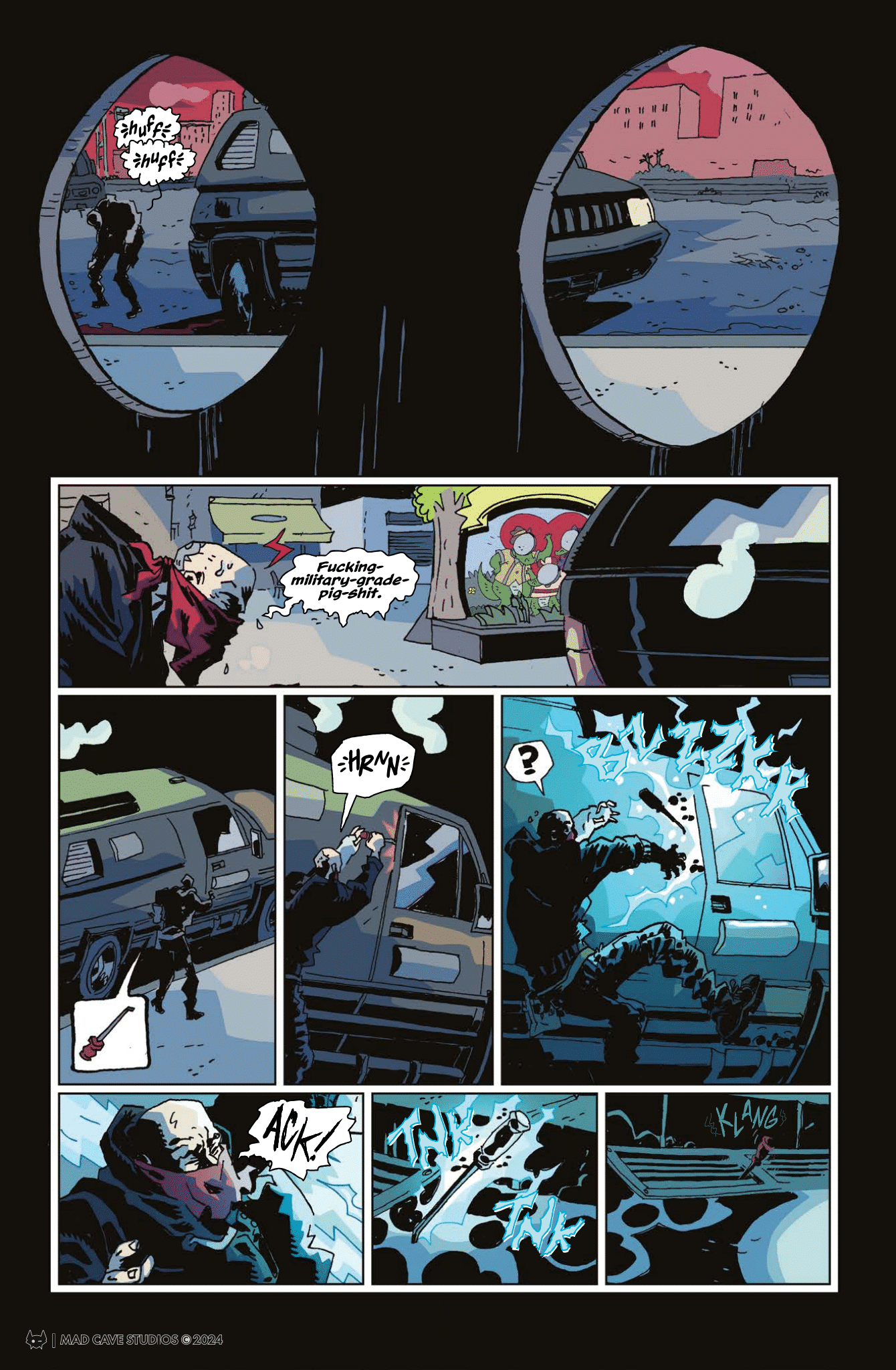 After the devastating events of the last issue, Kim is thrown into a blind panic. He’s desperate for answers and recklessly barrels forward looking for them. It all comes to a head in a face-to-face confrontation with the full might of the corporation that took his son’s remains. A corporation that knows everything about Kim and just how much he has to lose.