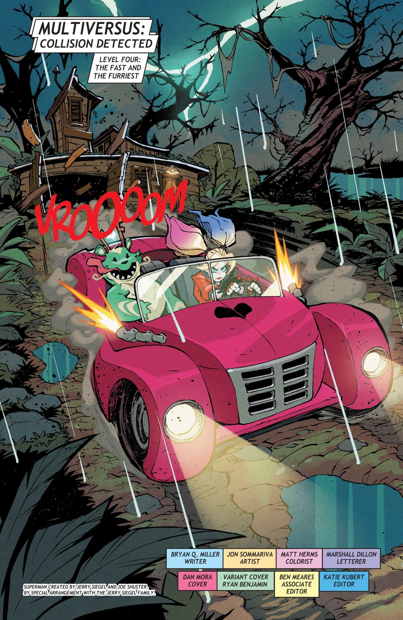 START YOUR ENGINES! The Clown Princess of Crime. The Maiden of Mischief. PhD. Call Harley Quinn anything you want, but don’t you dare try to take away her cuddly-wuddly new best friend from another universe! Clear the crosswalks and fasten your seatbelts as Harls leads the Justice League and a skyful of multiversal champions through the streets of Gotham City on a physics-bending, law-breaking, rubber-burning race to the finish…that will leave one champion’s life hanging in the balance!