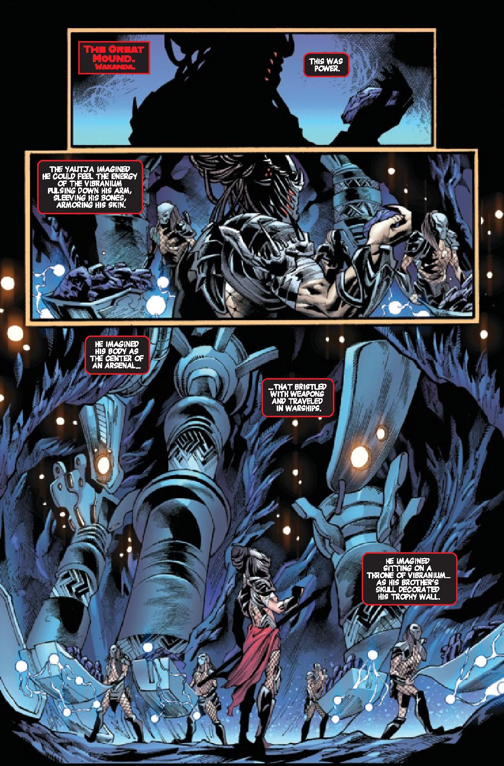 The Great Mound falls to the invasion! Vibranium is finally within reach of the Predator invaders. But the would-be conquerors are divided…and Wakanda knows better than most what that will do to a nation. If Shuri and T’Challa don’t find a way to stop the rival Yautja clans, Wakanda will be collateral damage in a battle that began on distant stars…and the war won’t stop there. RATED PARENTAL ADVISORY.
