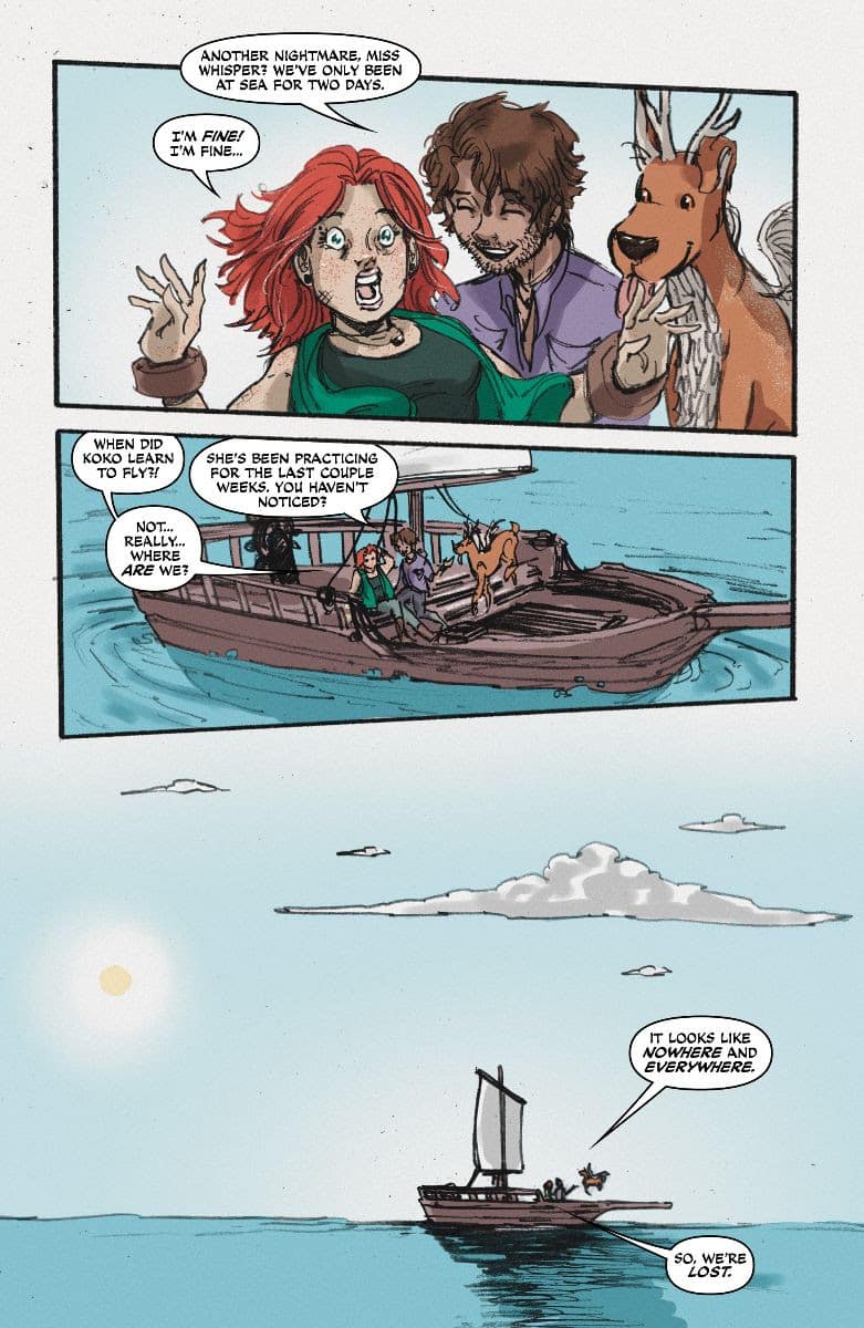 Leaving right where we left off, our protagonist Shayde Whisper, Eldon Redwood, and Koko set sail for the open sea, but brewing beneath the surface, harrowing creatures rip their way into Shayde’s dreams…and eventually, her reality. Catch up with Volume One as the epic second arc of STONEHEART begins!